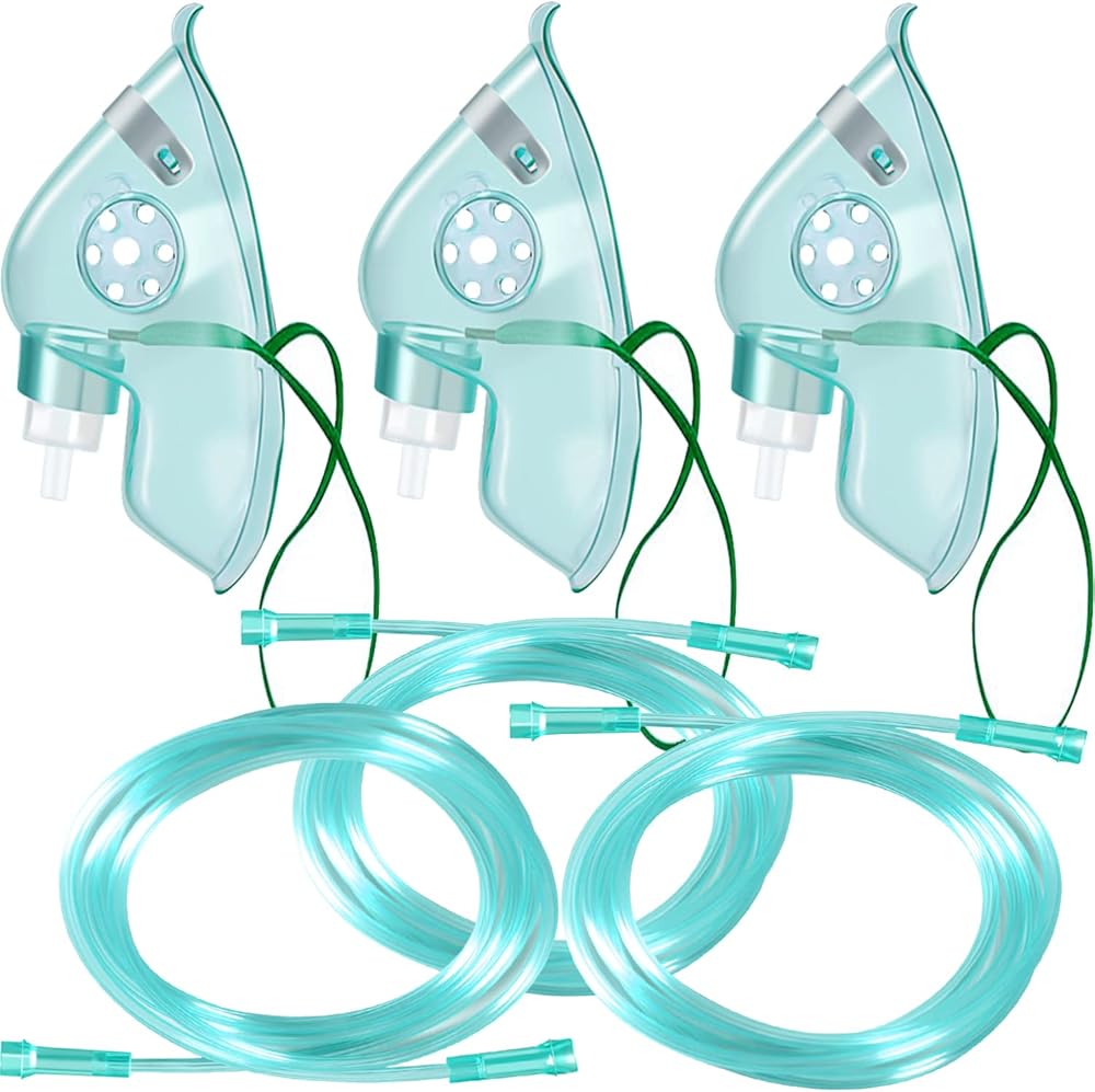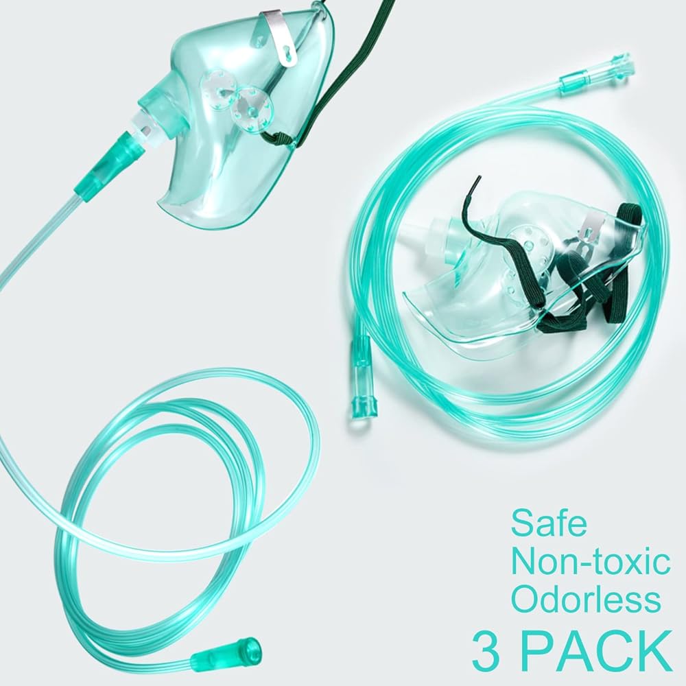 عبوة من 3 قطع من Shishuyu - قناع الأكسجين المطول للبالغين للوجه مع أنبوب وحزام مطاطي قابل للتعديل