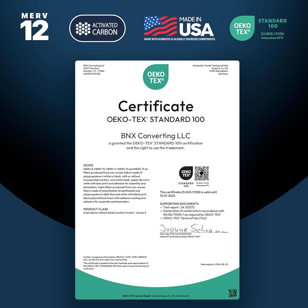 • يلتقط الجزيئات المجهرية - يتمتع مرشح الهواء BNX بتصنيف MERV 12 مما يسمح له بالتقاط 93 ٪ من الجزيئات المجهرية المحمولة بالهواء (3-10 UM) دون التأثير على تدفق الهواء. يلتقط الجزيئات المجهرية مثل البكتيريا والروائح والدخان وحبوب اللقاح ، والحيوانات الأليفة ، والمواد المثيرة للحساسية ، والغبار ، والعفن ، وعث الغبار ، والضباب الدخاني. هواء أنظف بشكل ملحوظ في 48 ساعة.