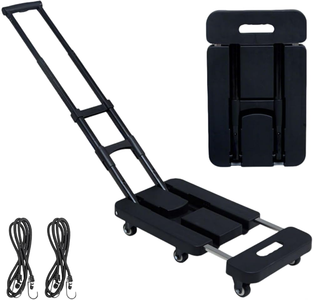 Stop Back Strain - Move 200lbs Like a Pro! KEQIKAI's engineer-designed folding hand truck solves 3 frustrations: bulky storage, unstable loads, and height mismatch. Why Professionals Choose Us: ✅ Airline Crew Approved - Weighs only 8.2lbs (lightest in class!) yet carries full-size suitcases ✅ Stair-Climbing Wheels - 360° swivel PVC tires glide over carpets/curbs ✅ No-Tool Assembly - Ready in 90 seconds (unlike 30-min competitor builds) ✅ Apartment-Friendly - Fits in elevators/closets (unfolded: 39"x16"x4") Pro Tip: Attach the bungee cord in X-shape across boxes for earthquake-level stability. The scratch-proof frame survives airport baggage handling abuse. Ideal For: Moving apartments (carries 8 medium boxes per trip) Warehouse managers (replaces bulky carts) Market vendors (transports produce crates) Hotel staff (handles luggage stacks) RV owners (fits in tiny storage compartments)