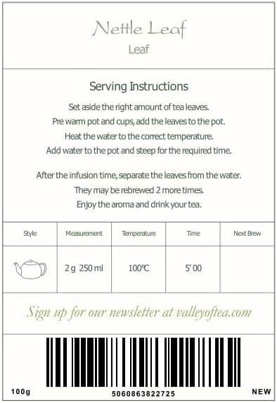 يستخدم موردو شاي نبات القراص الذين نستخدمهم أوراقًا عضوية بالكامل، مما يضمن الحصول على شاي عالي الجودة دون أي مفاجآت مخفية