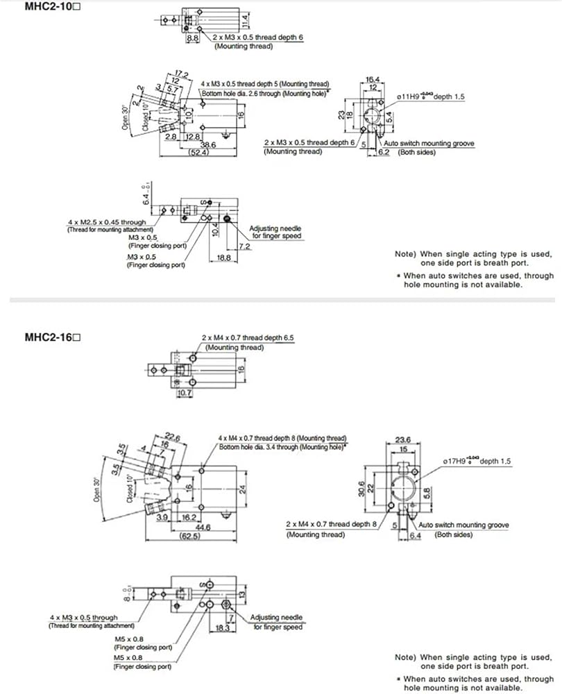 - MHC2 10D 16D 20D 25D 32D Double Acting Pneumatic Gripper Type Angular Style Aluminium Clamps Air Cylinder Manufacturers
