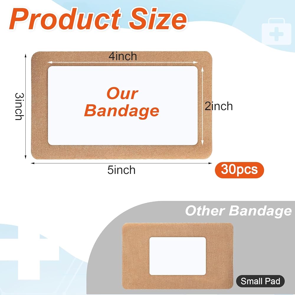 30 قطعة من الضمادات اللاصقة الكبيرة جدًا 5 × 3 بوصة، ضمادة لاصقة كبيرة مع وسادات غير لاصقة، ضمادات كبيرة من القماش المسامي للعناية بالجروح، خالية من اللاتكس، مغلفة بشكل فردي (5 * 3 بوصة)