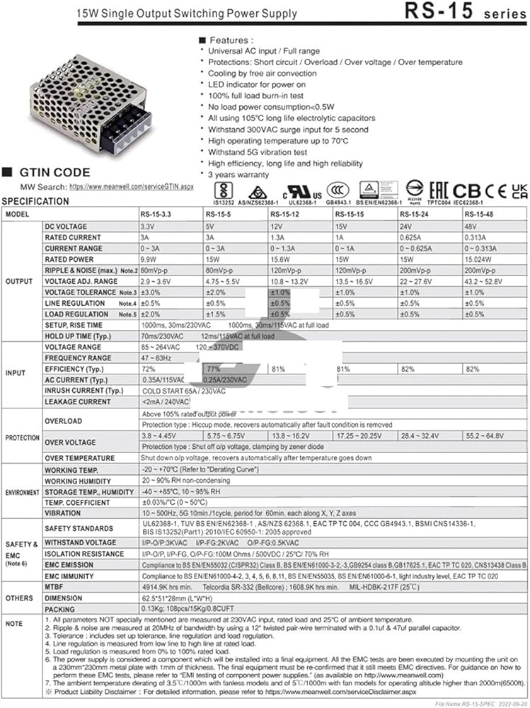 Model Number : LRS-600-5 LRS-600-12 LRS-600-24 LRS-600-36 LRS-600-48 LRS-350N2-48