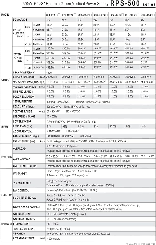 RPS-500 RPS-500-12-C RPS-500-15-C RPS-500-18-C RPS-500-24-C RP-500-27-C RPS-500-36-C RPS-500-48-C (RPS-500-12-C)