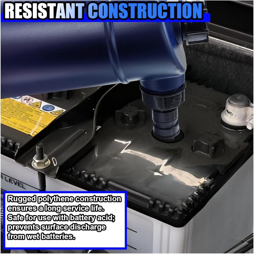 【High-Quality】: This car battery filler is made of high-quality PP material, featuring good toughness and resistance to cracking. It has excellent corrosion resistance, capable of withstanding the erosion of substances such as battery electrolytes. The battery filler effectively isolates harmful liquids, preventing users from direct contact and potential harm. Additionally, it prevents impurities from mixing in, maintaining the purity of the liquid stored.