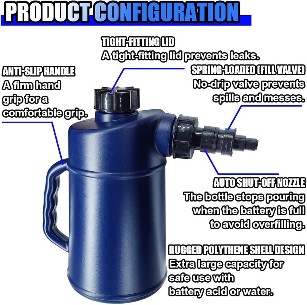 -With a 2-liter capacity, this battery filler eliminates the need for frequent refilling, making car battery maintenance more convenient and efficient.