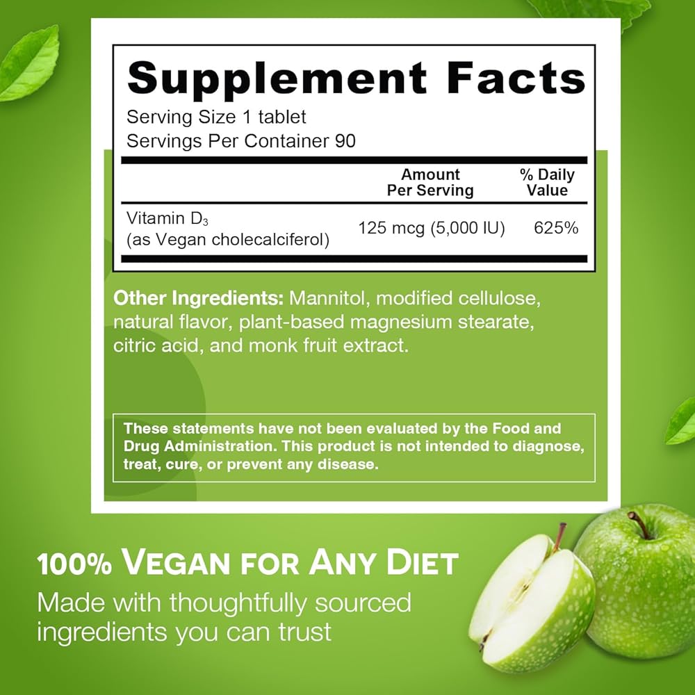 EZ Melts فيتامين D3 القابل للذوبان 5000 وحدة دولية، خالي من السكر، كمية تكفي لمدة 3 أشهر