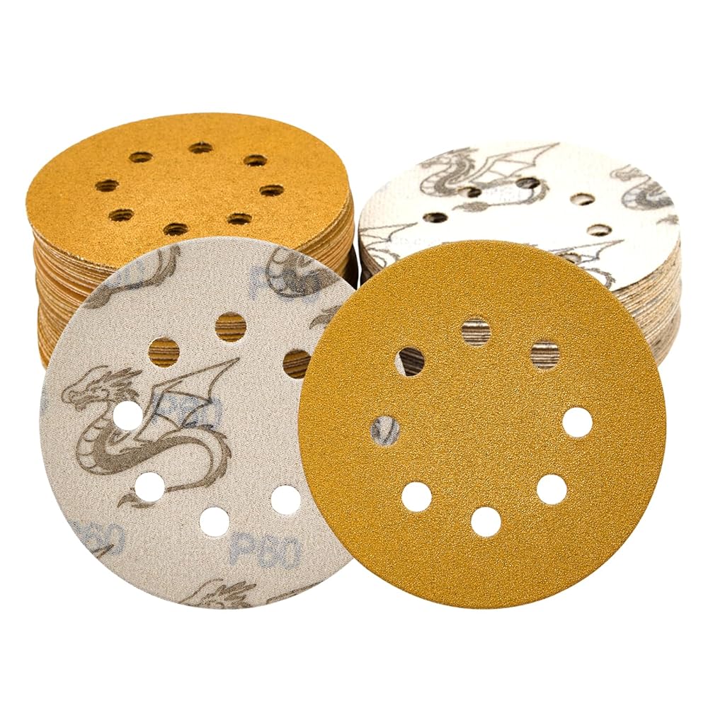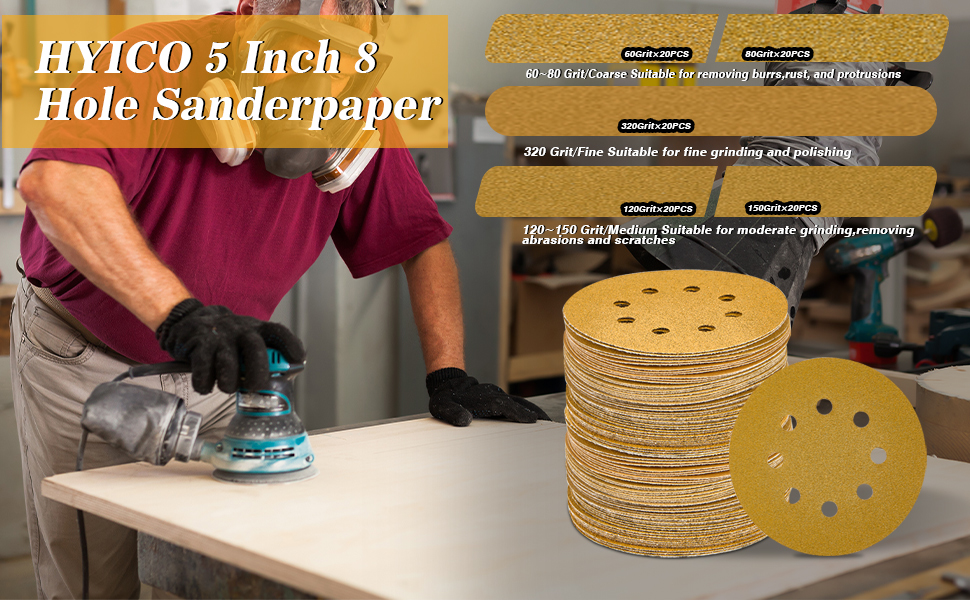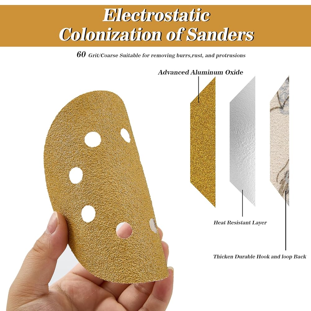 • مجموعة ورق الصنفرة 100 PCS - 100 لكل صندوق ، 20 × 60/80/120/150/320GRIT خطاف صنفرة الرمل الذهب.