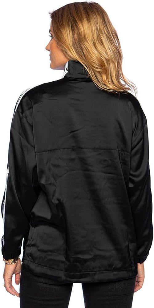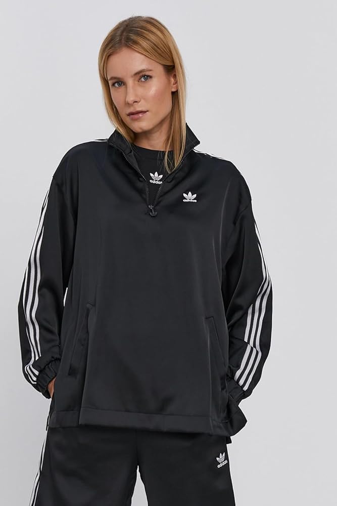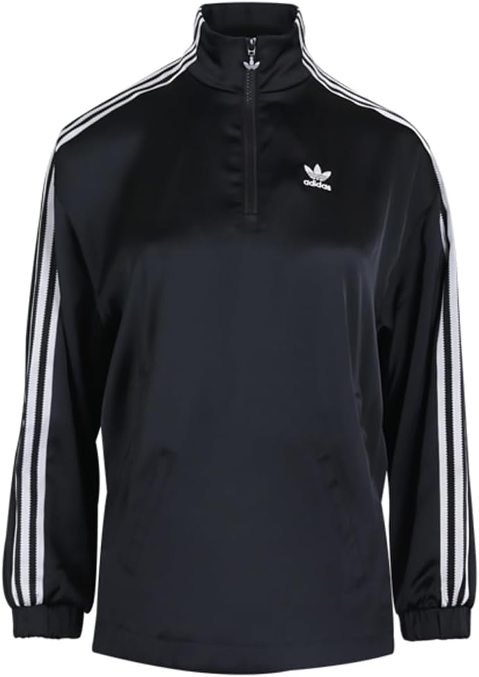 Elevate your streetwear game with the adidas Originals Women's Adicolor Classics Satin Quarter-Zip Pullover Track Jacket. Crafted from a sustainable blend of 97% recycled polyester and 3% elastane, this jacket combines eco-conscious fashion with unmatched comfort and style. The sleek black satin finish offers a chic, timeless look, while the quarter-zip design provides versatile wear. Whether you're heading out for a casual day or a sporty outing, this track jacket ensures you do it with flair and confidence.