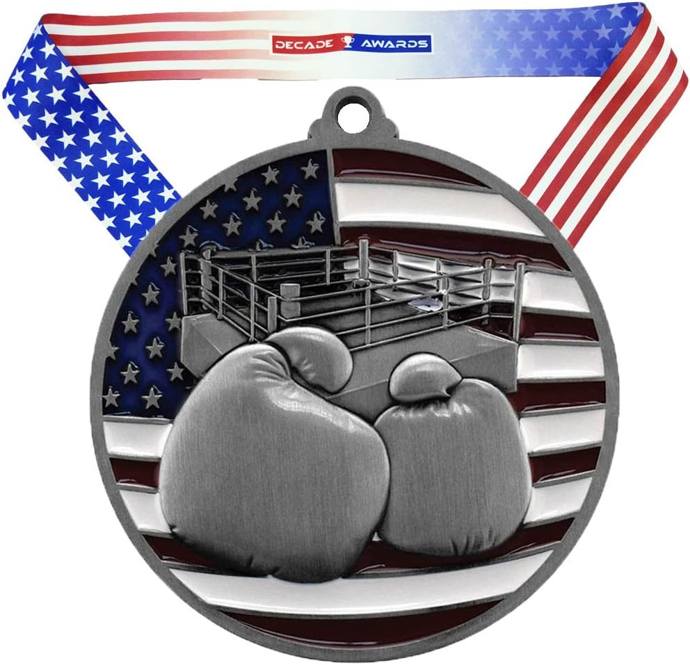 Celebrate achievement in the boxing ring with a bold, patriotic twist! Whether it's a championship bout, local tournament, or club recognition, honor every punch and performance with the Decade Awards Custom Engraved Red, White and Blue Boxing Medallion in Gold, Silver, or Bronze. This vibrant medal is a lasting keepsake that proudly showcases skill, strength, and determination inside and outside the ring.