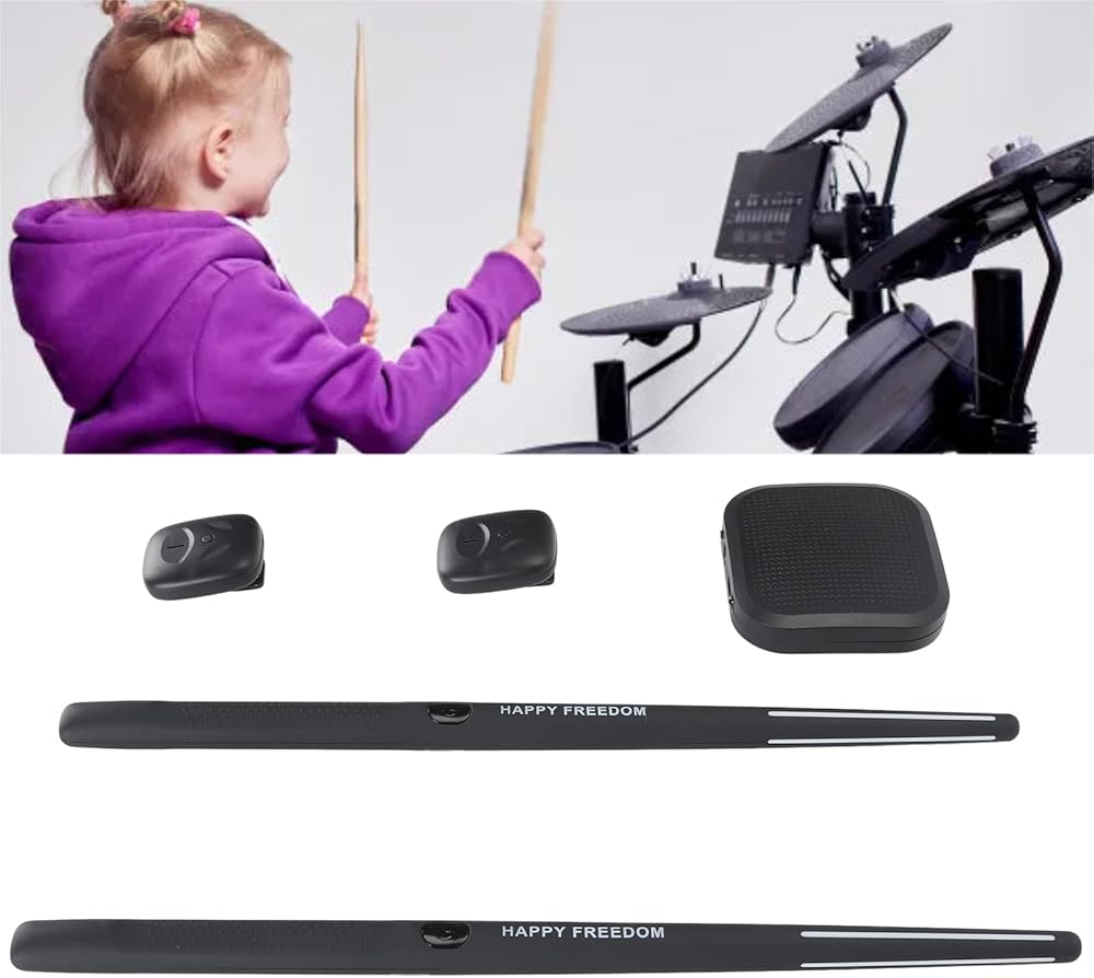 PACKAGE INCLUDED : Electronic drum set contains 2 air drumsticks, 2 foot pedals, audio converter, audio/charging cables, and user manual. Portable components with built-in lithium batteries
