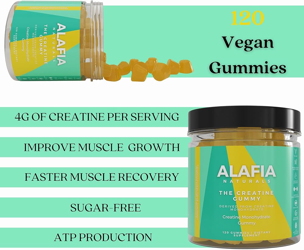 علكة الكرياتين من Alafia Naturals - علكات الكرياتين مونوهيدرات للرجال والنساء، 4 جرام من الكرياتين لكل وجبة، قبل وبعد التمرين، زيادة القوة، بناء العضلات، تقصير فترة التعافي، خالية من السكر، 120 قيراط