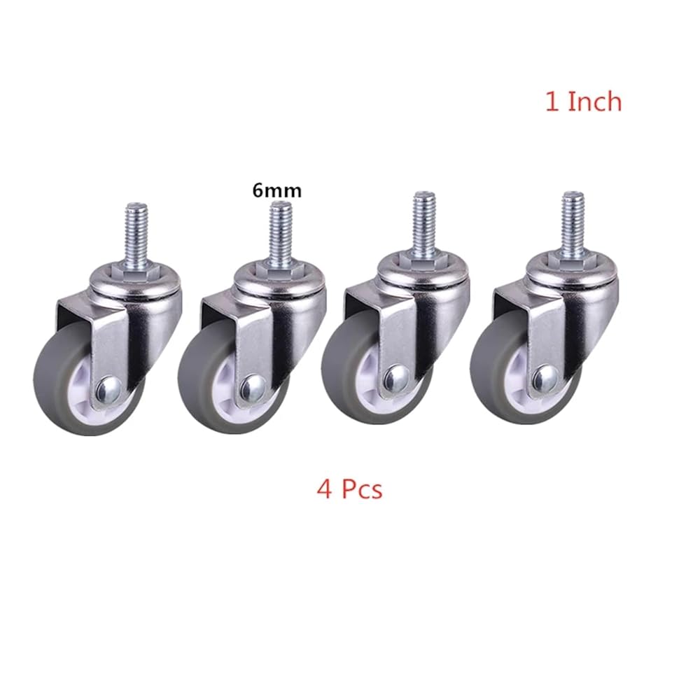 4Pcs Casters 1 Inch Gray Tpe Screw Caster, M6 Silent Wheel Diameter25mm Household Universal Wheel