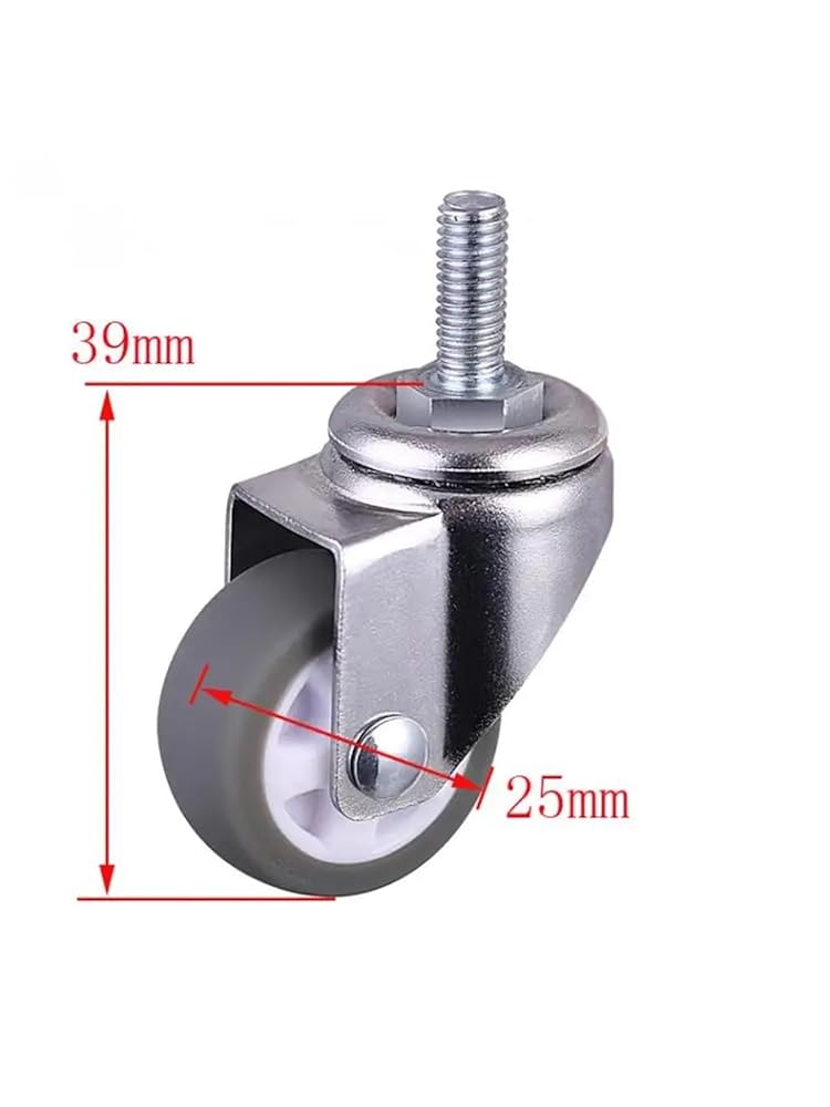 4pcs عجلات 1 بوصة رمادية TPE المسمار العجلات ، M6 عجلة صامتة قطرها 25 ملم العجلة العالمية