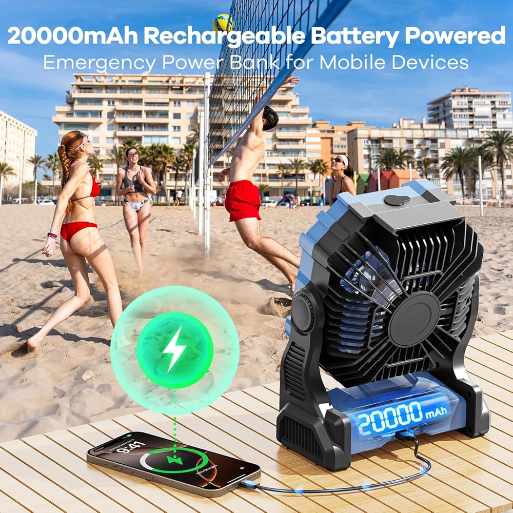 • 🔋【 عمر بطارية طويل الأمد】-مدعوم من بطارية قوية 30000 مللي أمبير في الساعة قابلة لإعادة الشحن ، تجعلك مروحة التخييم الخاصة بنا باردة لمدة 8-16 ساعة بشحن واحد. مع شحن USB-C السريع ، يمكنك بسهولة تشغيله باستخدام جهاز الكمبيوتر المحمول أو بنك الطاقة أو شاحن السيارات. لا مزيد من القلق بشأن نفاد العصير خلال مغامراتك الخارجية!