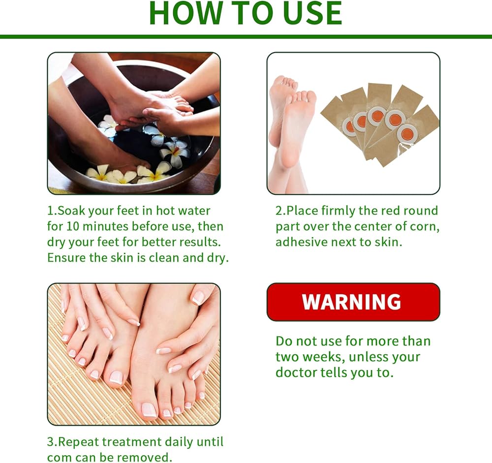 Effective Corn Remover Pads: This technologically advanced corn remover help relieve foot pain and remove the corn. The feet corn will be removed within a couple of days after the beginning of use.(Soak your feet in hot water for 10 minutes, and use it after drying your feet for better results)