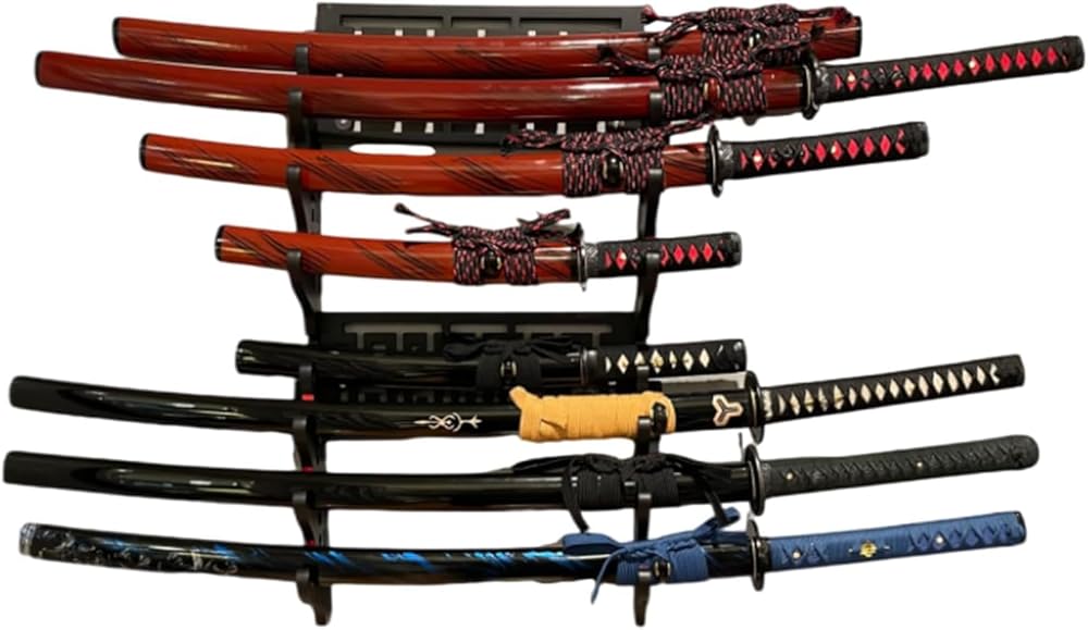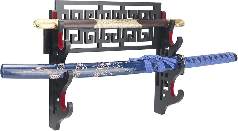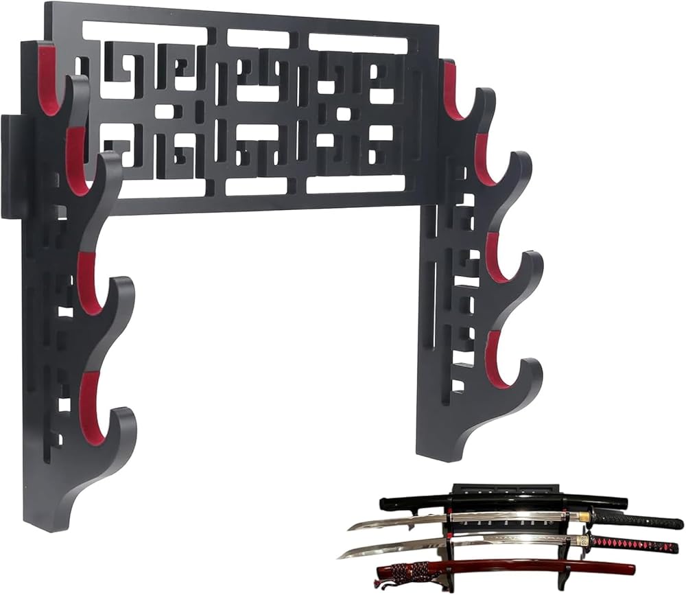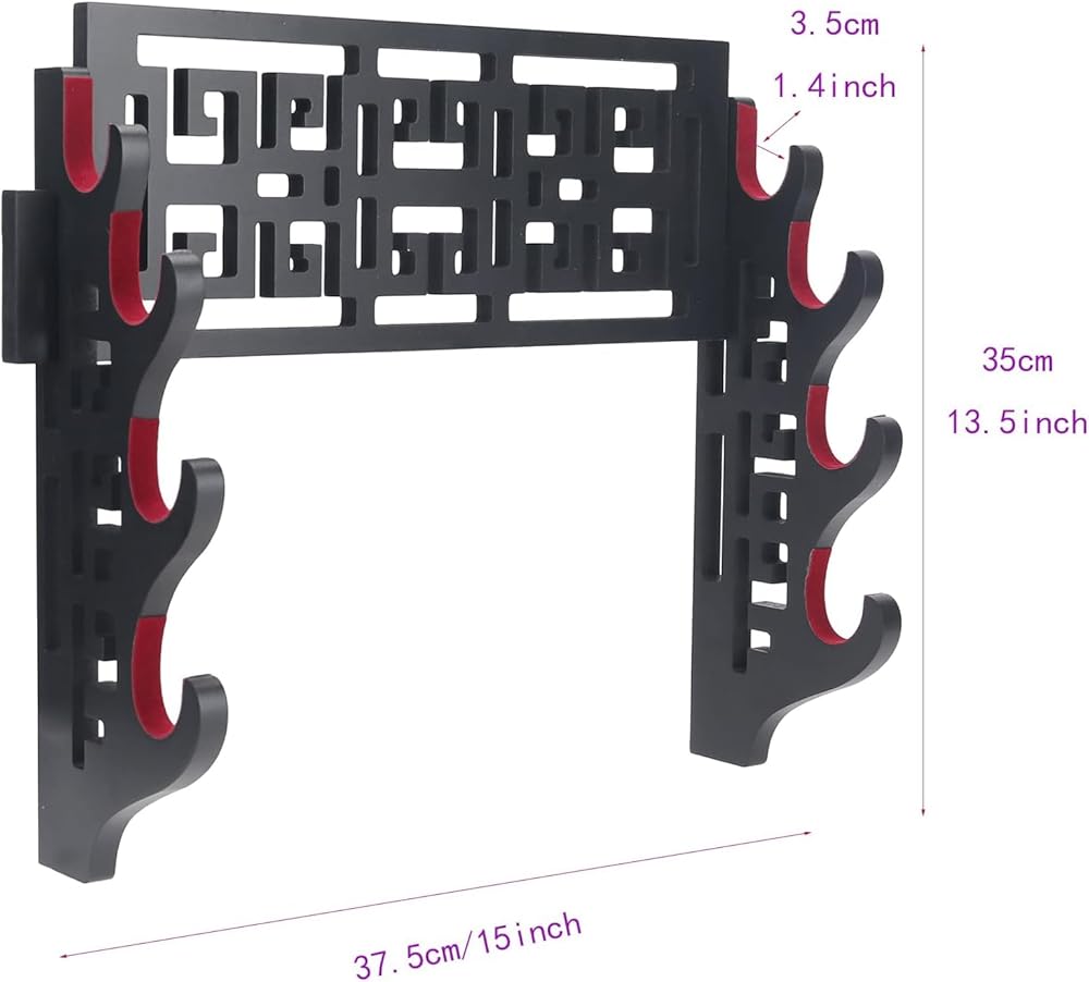 - المواد: الخشب المضغوط. اللون: كل الأسود. حامل حامل جدار لائق لعرض السيوف الخاص بك.