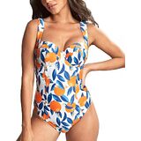 Panache Monica Balcony Underwire Swimsuit (SW1850) is a retro one-piece bathingsuit with a fun and chic print inspired by the orange groves of Sicily. The multipart underwire cups provide a boosted and open sweetheart neckline and just a little flex to control without cutting in. A concealed powermesh liner in the tummy area provides medium control and a smoothed silhouette. Stylish wide and cushioned front straps really enhance the neckline while keeping you comfortable! Soft touch fabric feels incredible AND has high chlorine resistance, so you can stun in the sun and have no stress when you take a dip in the pool!