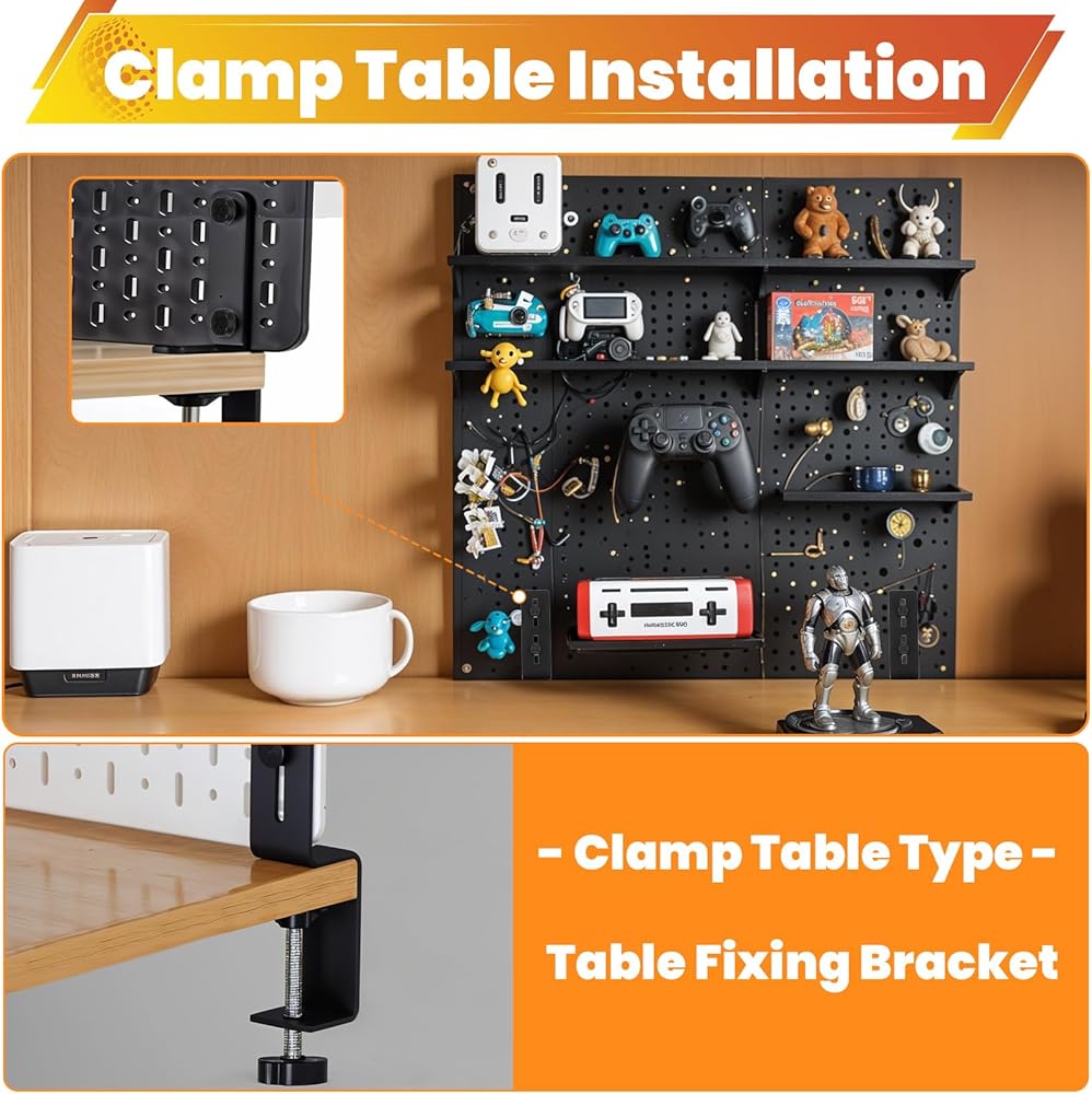 【Strong & Durable】- Clamping desktop metal pegboard bracket, high hardness, not easy to wear.