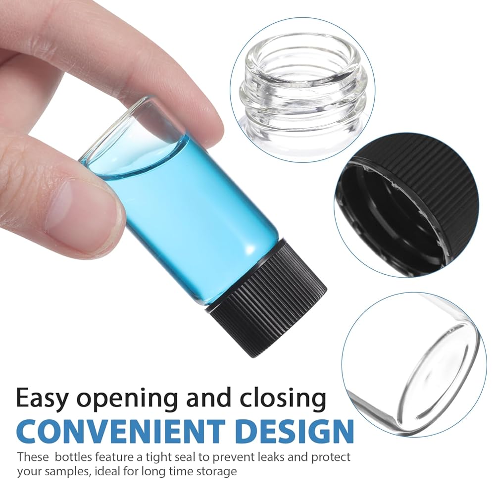 تسرب- تصميم للتخزين الآمن: تم تجهيز قوارير الزجاج هذه بأغطية المسمار لإغلاق السوائل الخاصة بك بشكل آمن. سواء كنت تخزن الزيوت الأساسية أو عينات العطور أو غيرها من السوائل ، يمكنك الوثوق بهذه الزجاجات المصغرة لمنع الانسكابات والحفاظ على سلامة محتوياتك أثناء السفر أو التخزين