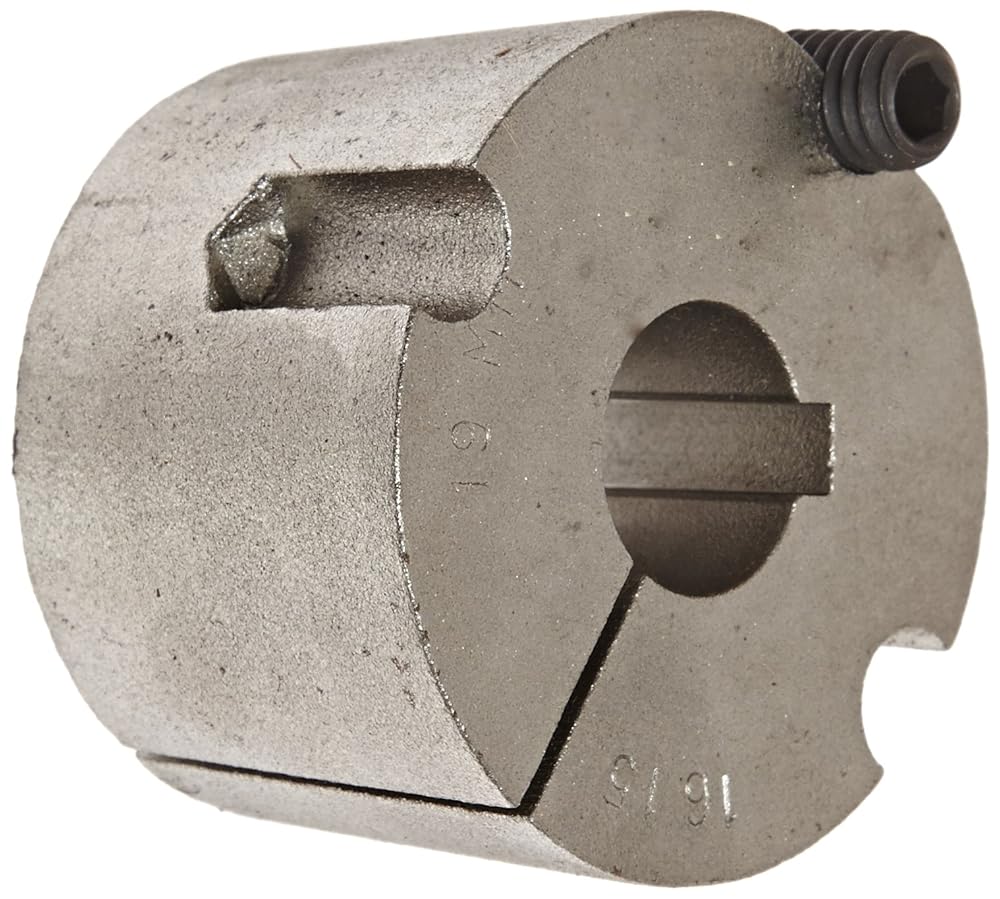 This Martin 1615 taper bushing is made of sintered steel and is used for mounting a taper bushed pulley, sheave, or sprocket on a drive shaft. It is flush mounted for reduced mounting width and has a split taper for a tight clamp to shafts. The bushing is made of sintered powder steel for greater strength and wear resistance than plain carbon steel. It is keyed to the shaft to prevent the shaft from rotating in the bushing, and it is interchangeable with taper bushings from various manufacturers. This taper bushing is used in automobiles, construction equipment, agricultural machinery, and home appliances, among others.
