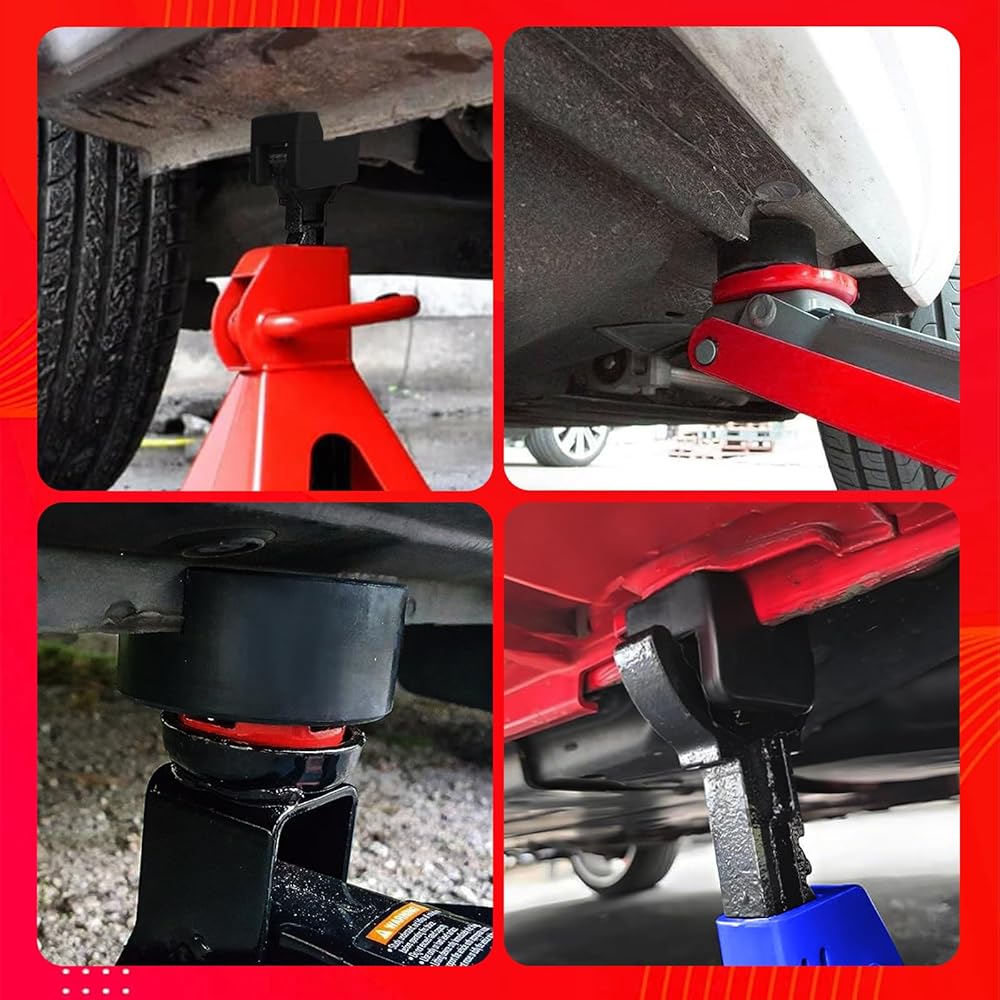 التصميم المرسوم: عندما يتم رفع السيارة بواسطة مقبس ، تجنب منصات الحامل جاك ثني شعاع الإطار وحراسة اللحامات. تحمي منصات مطاطية Jack Stand الخاصة بنا أيضًا أجزاء التعليق المطلية ، بينما يمنع تصميم وسادة مقبس اللحام قرصة الخدوش أو الفواصل على قضبان الهيكل.