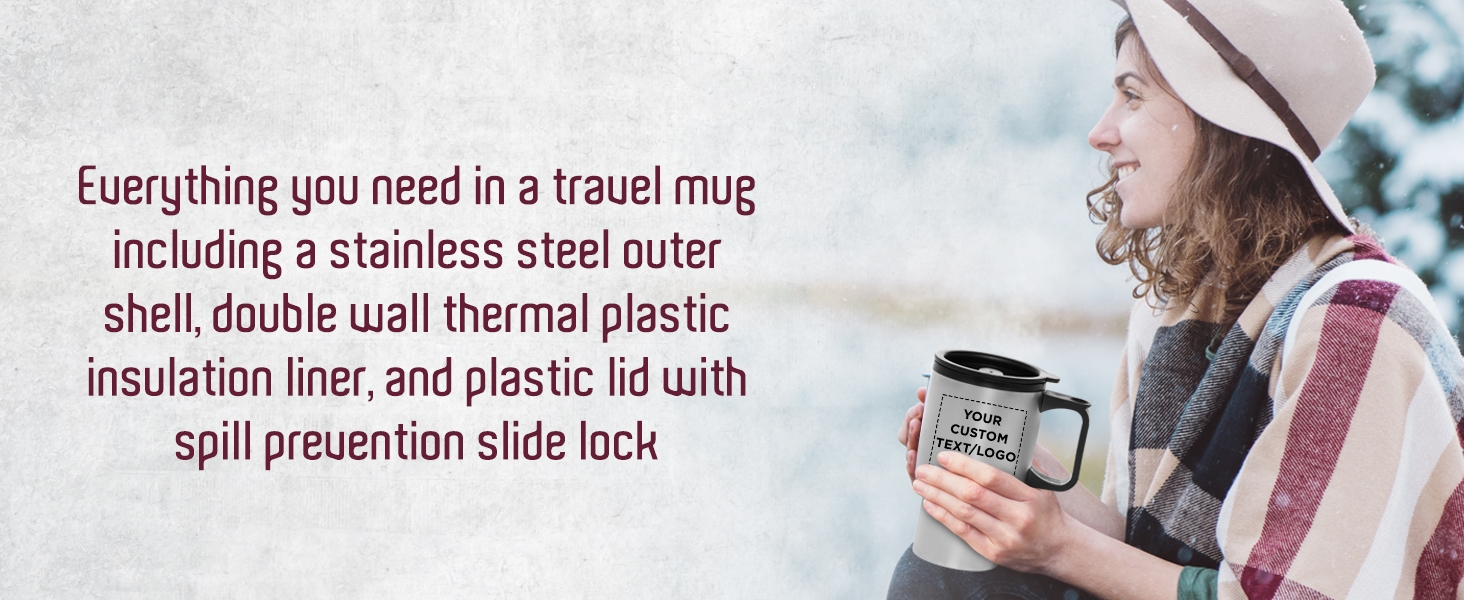 تصميم متين ومريح - كل ما تحتاجه في قدح السفر بما في ذلك قشرة خارجية من الفولاذ المقاوم للصدأ ، وبطانة عزل بلاستيكية مزدوجة الجدار ، وغطاء بلاستيكي مع قفل شريحة الوقاية من الانسكاب