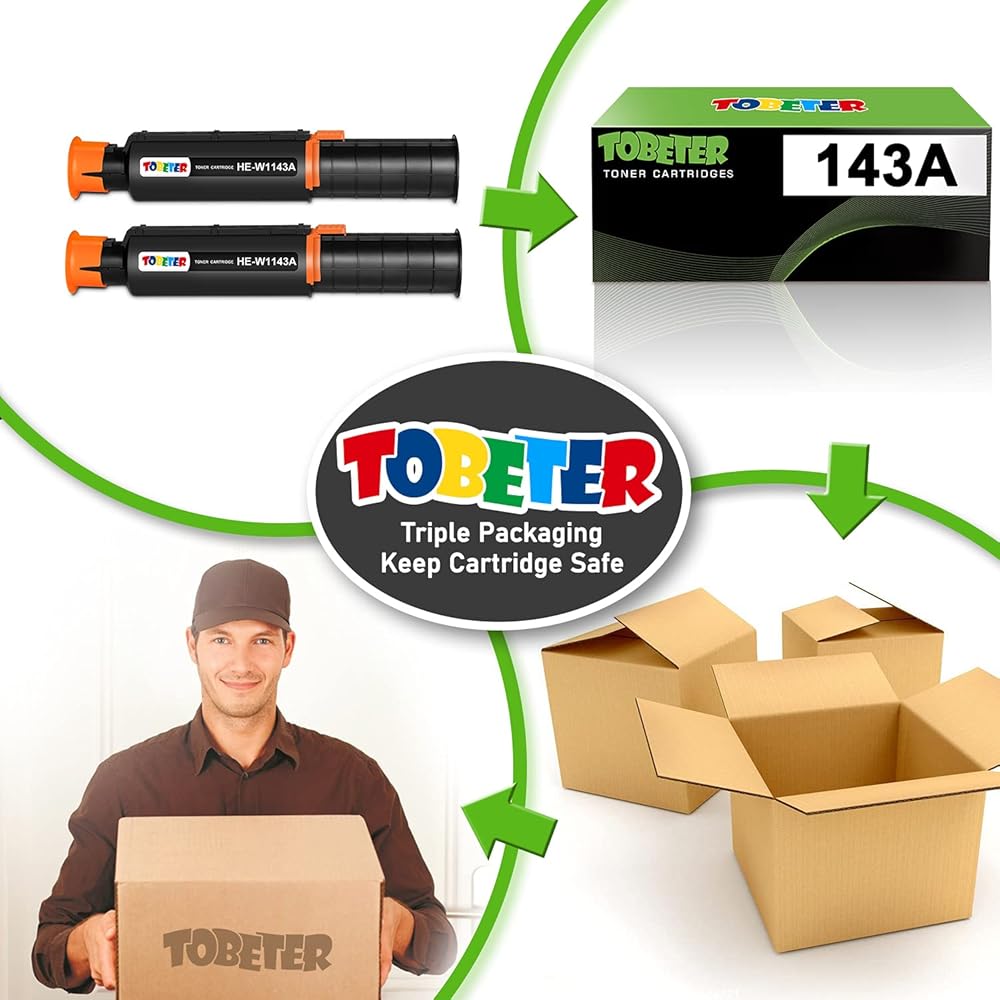 خرطوشة حبر متوافقة مع ToBeter 143A بديلة لطابعة HP 143A W1143AD 143AD W1143A لطابعة HP Neverstop Laser 1001nw MFP 1201n 1202nw (2 أسود)