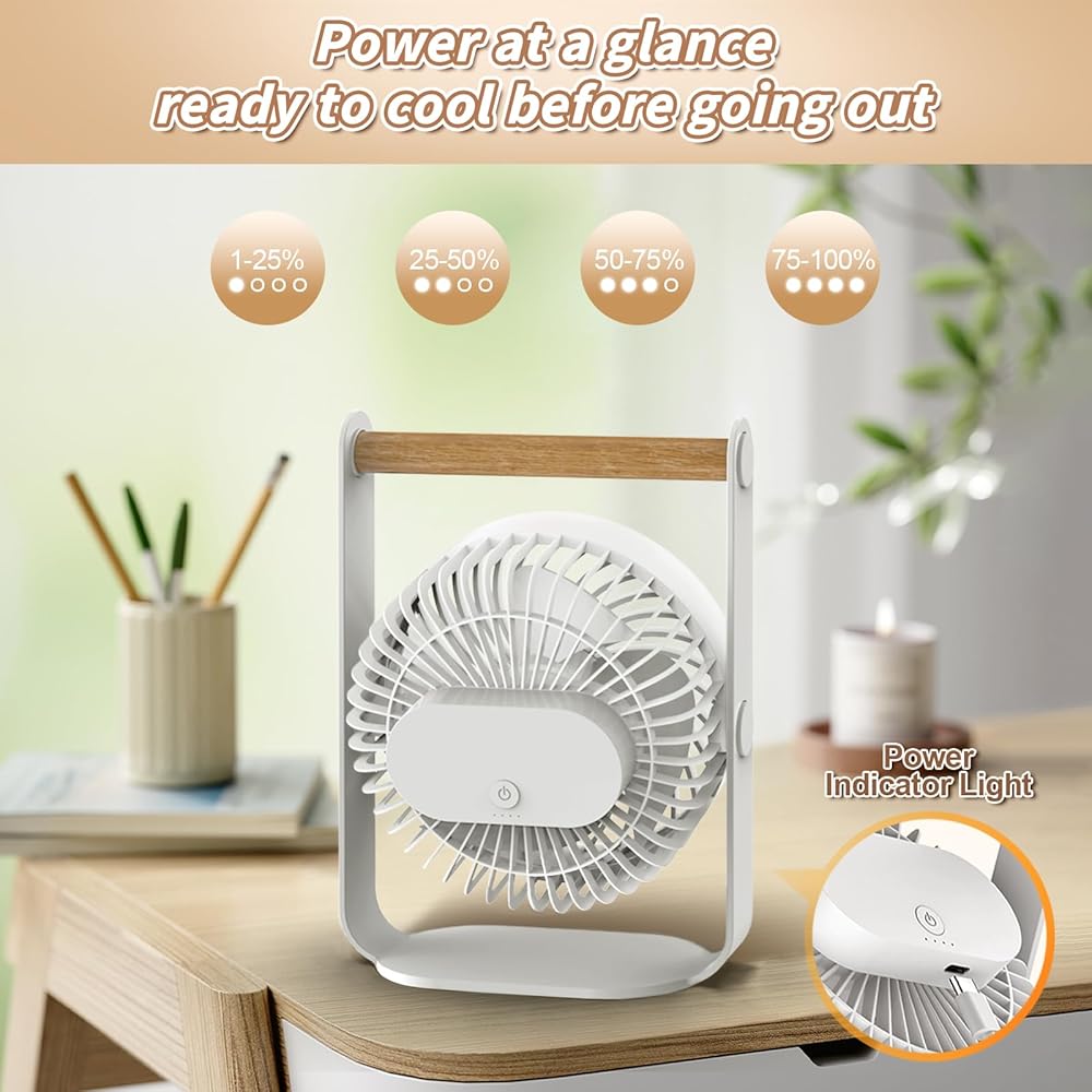 مروحة المكتب القابلة لإعادة الشحن: مع بطارية قابلة لإعادة الشحن 2000 مللي أمبير ، توفر مروحة المكتب هذه استخدام 2.5-9 ساعة في شحنة واحدة. ويستغرق مروحة الجدول حوالي ثلاث ساعات لشحنها بالكامل. يمكنك شحنه باستخدام كبل USB ، مما يجعله مناسبًا لاستخدامه كمحواة USB