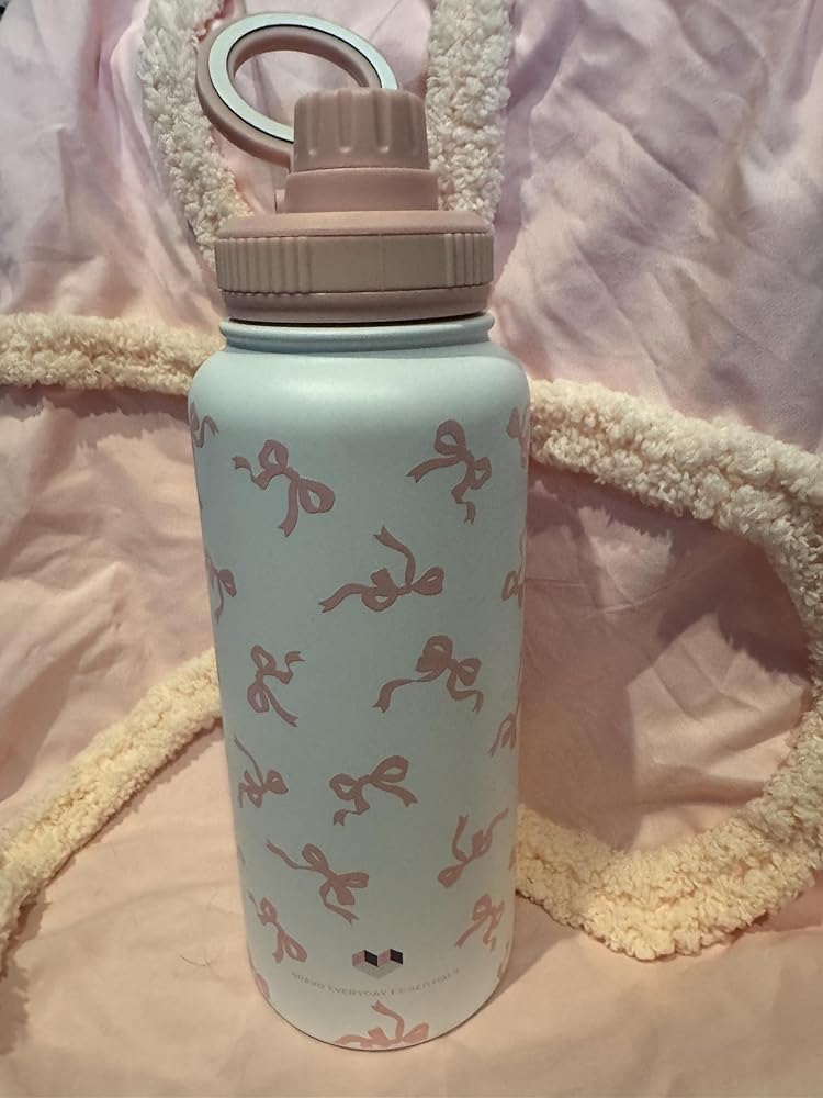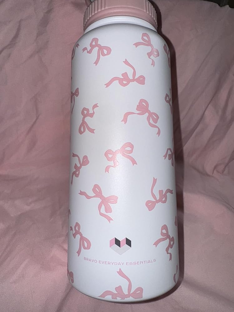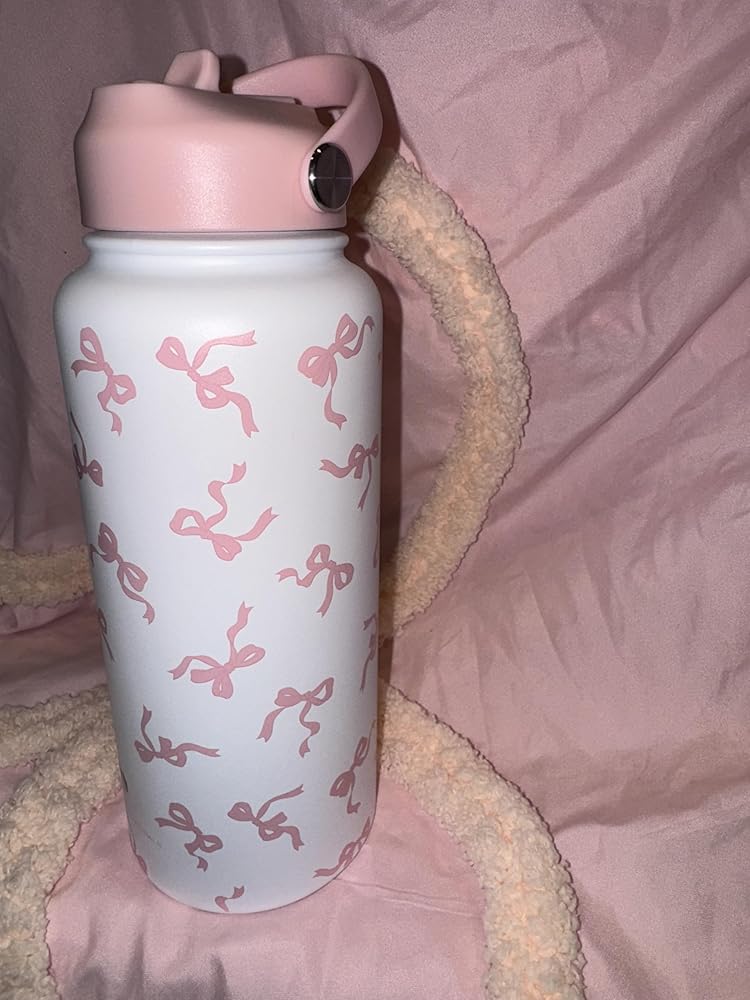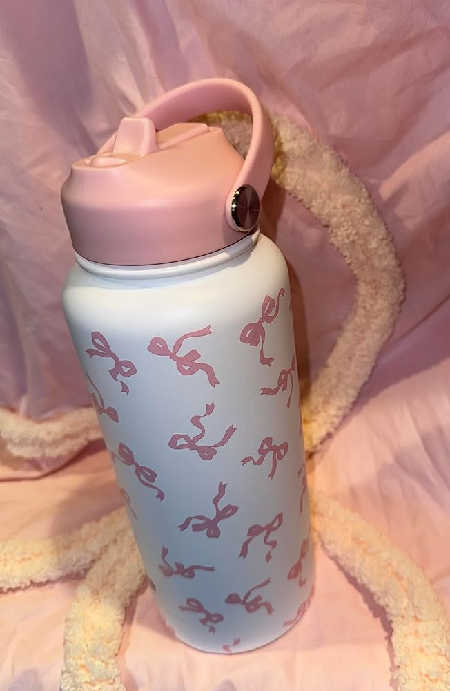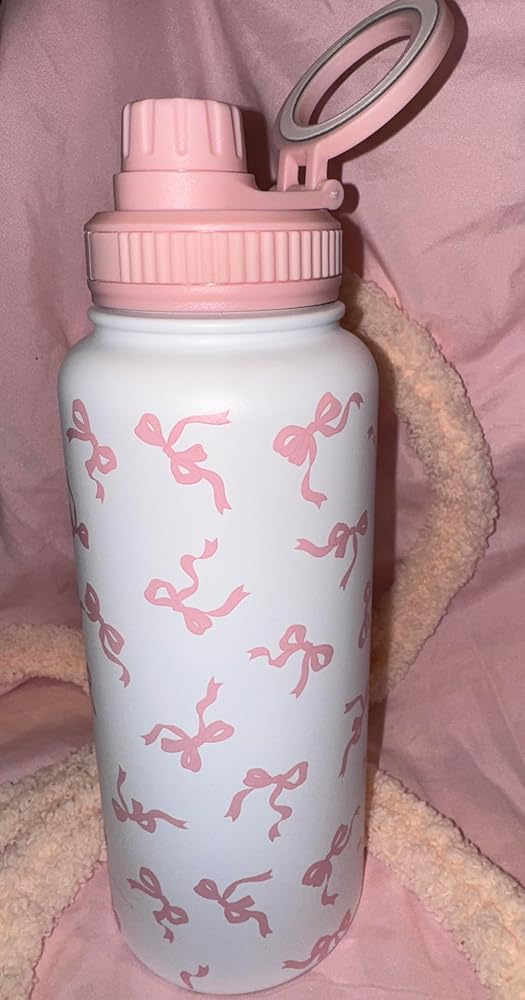 Stay stylishly hydrated with this charming 32 oz insulated water bottle. The sleek white stainless steel design features a delightful pattern of pink bows, adding a touch of feminine elegance to your daily hydration routine. The double-wall construction helps maintain your beverage's temperature, keeping cold drinks cold and hot drinks hot for hours. With its generous 32-ounce capacity, you'll make fewer trips to refill throughout your busy day. The bottle comes with two secure lid design to prevent leaks and spills, making it perfect for your gym bag, office desk, or daily commute. The durable stainless steel construction ensures long-lasting performance while resisting dents and scratches. This versatile water bottle is an ideal companion for workouts, outdoor activities, or simply staying hydrated at home or work. The wide mouth opening makes it easy to fill with ice cubes and clean thoroughly.