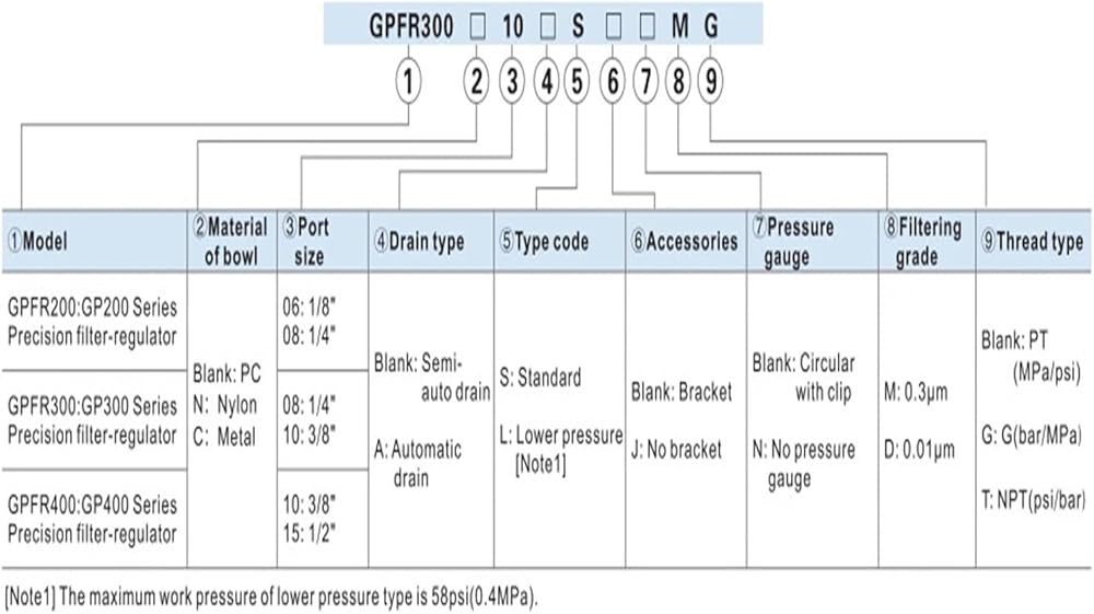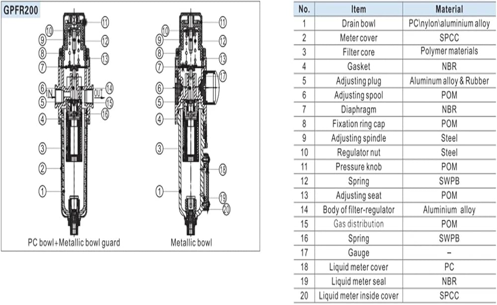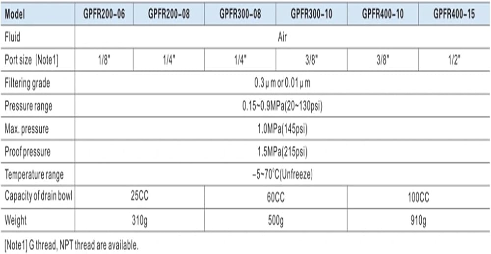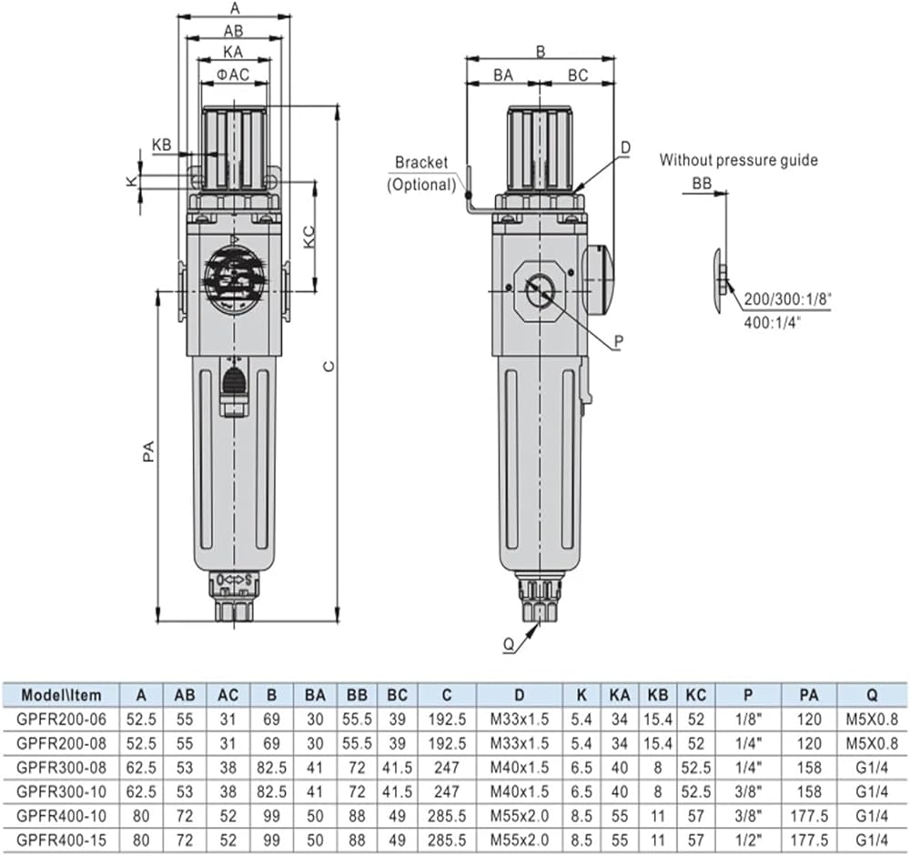 Filter Regulator GPFR200 GPFR20006 1/8" GPFR20008 1/4"