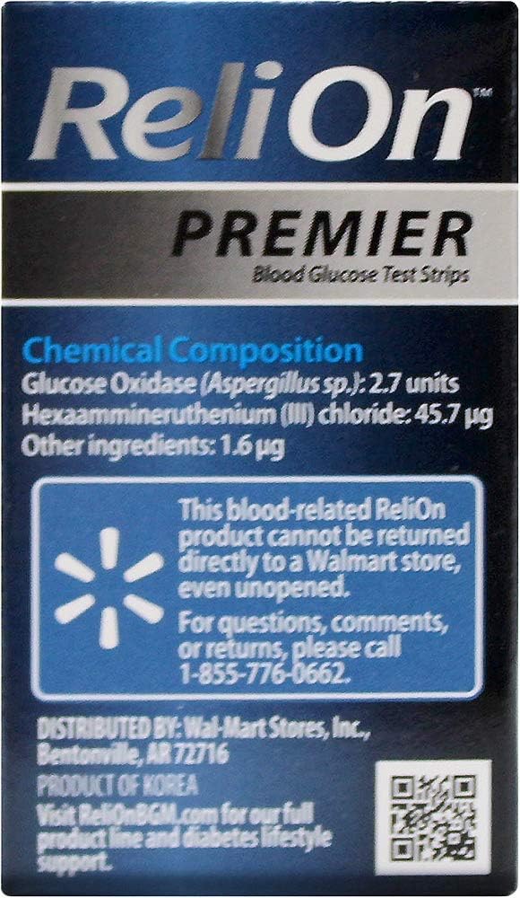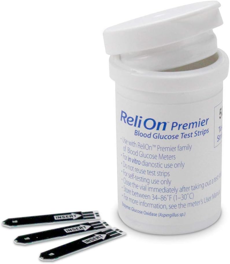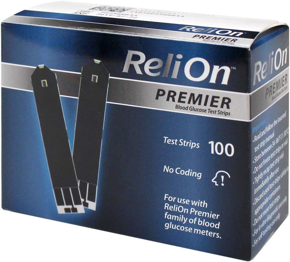 شرائط اختبار جلوكوز الدم من ريلاون بريميير، 100 قطعة (2 قطعة) للاستخدام مع عائلة ReliOn Premier من أجهزة مراقبة نسبة الجلوكوز في الدم. توفر شرائط اختبار جلوكوز الدم ReliOn Premier حلاً دقيقًا واقتصاديًا لاحتياجات مراقبة جلوكوز الدم لديك. لا تتطلب شرائط اختبار ReliOn Premier سهلة الاستخدام أي ترميز وتتطلب عينة دم صغيرة بحجم 0.5 ميكرولتر فقط. مع وقت اختبار مدته خمس ثوانٍ فقط، توفر شرائط الاختبار هذه قراءة دقيقة للغاية لمستويات الجلوكوز لديك. شرائط اختبار جلوكوز الدم ReliOn Premier مخصصة للاستخدام فقط مع عائلة ReliOn Premier من أجهزة قياس السكر في الدم، بما في ذلك ReliOn Premier Voice وReliOn Premier BLU. قم بتنزيل تطبيق ReliOn Life Diabetes للاحتفاظ بنتائج الاختبار أثناء التنقل.