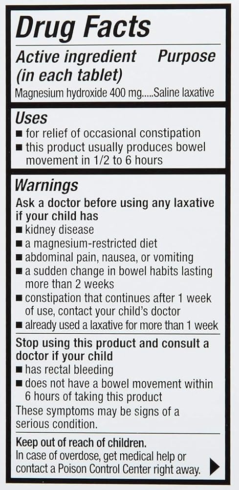 يحتوي على هيدروكسيد المغنيسيوم، وهو ملين ملحي يوفر راحة لطيفة