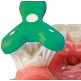 3-bristle pads at different angles clean all surfaces of the teeth at once, saving time and making easier work of necessary dental care.