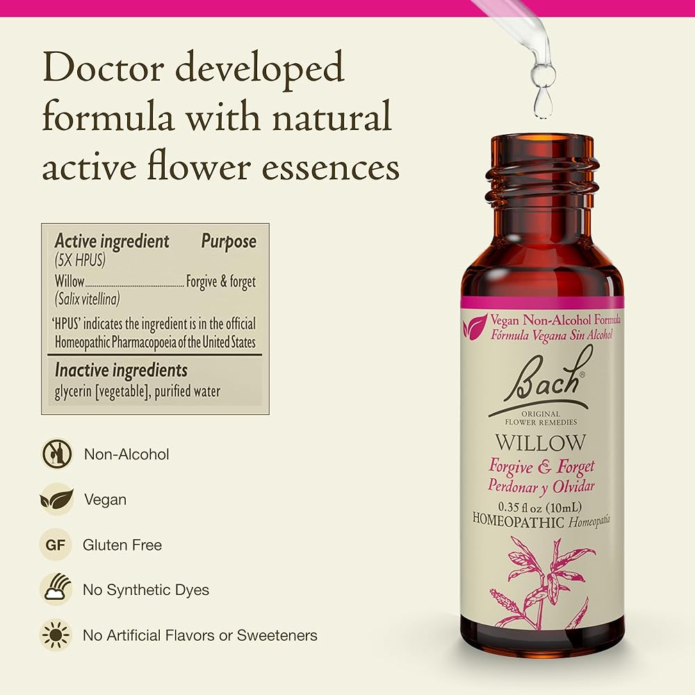 سامح وانسى: يشجع خلاصة زهرة الصفصاف باخ المثلية في صبغة جديدة خالية من الكحول القدرة الإيجابية على التسامح ونسيان الظلم الماضي والاستمتاع بالحياة