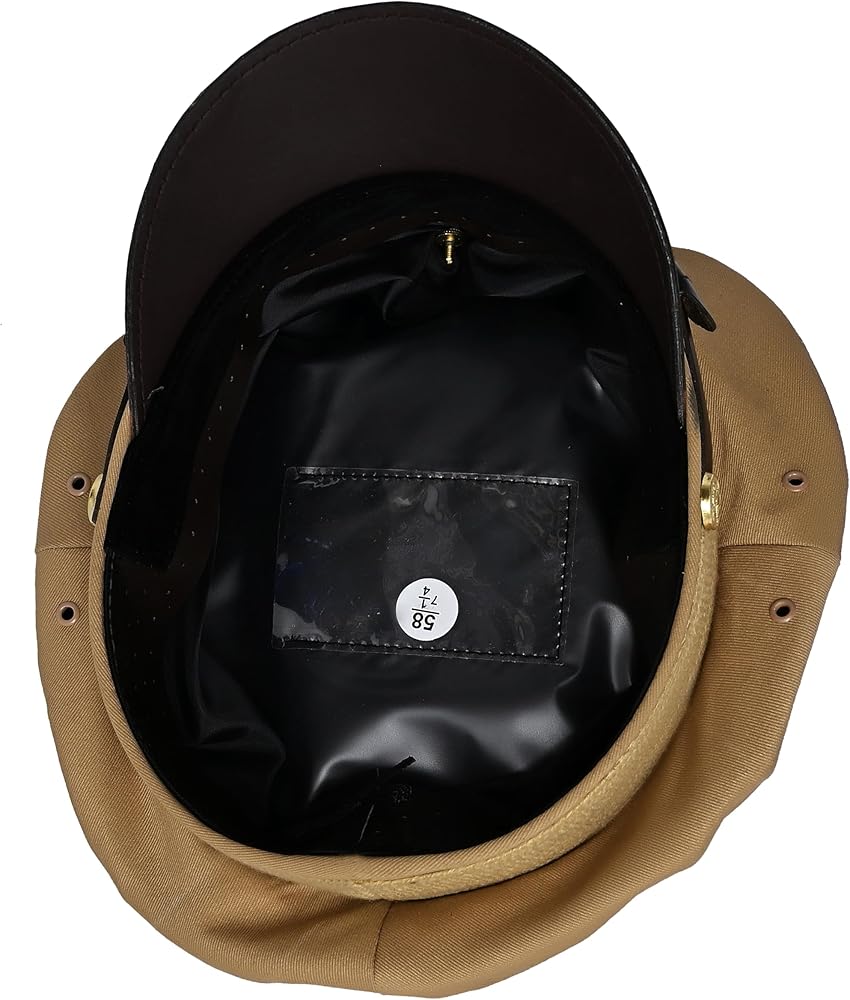 USA Army Tan colour cotton officer peek cap gold leather strap metal insignia 58cm made of fine quality tan cotton gold brass plated badge leather peek inside plastic size card leather sweet band leather strap