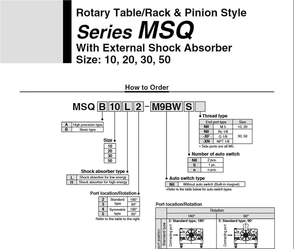- Type HRQ MSQB10A MSQB20A MSQB30A MSQB50A Rotary Pneumatic Cylinder MSQB50R 90 degree 180 degree MSQB10R MSQB20R MSQB30R 50R