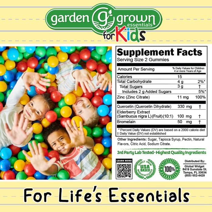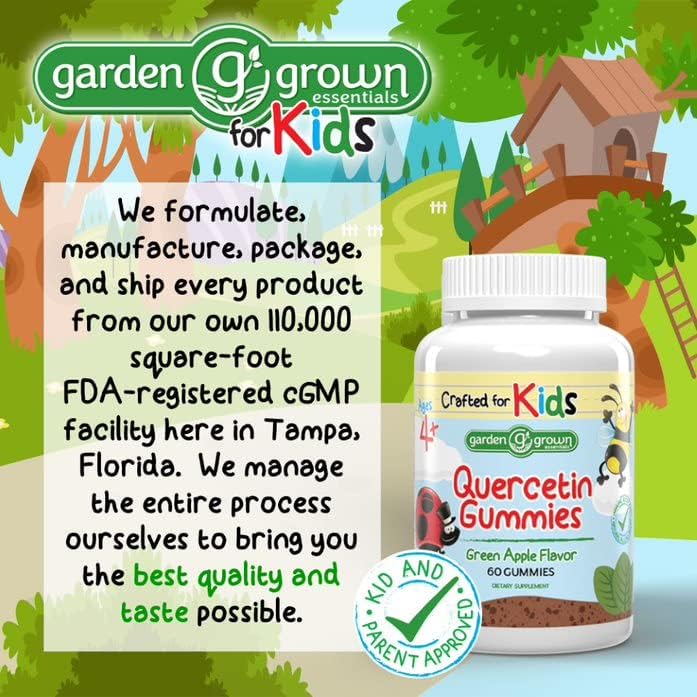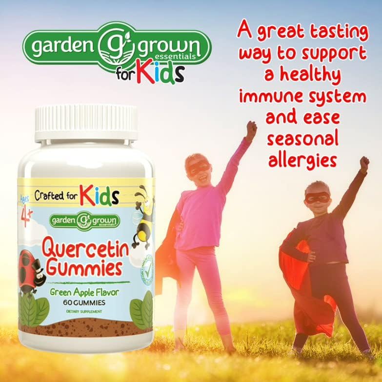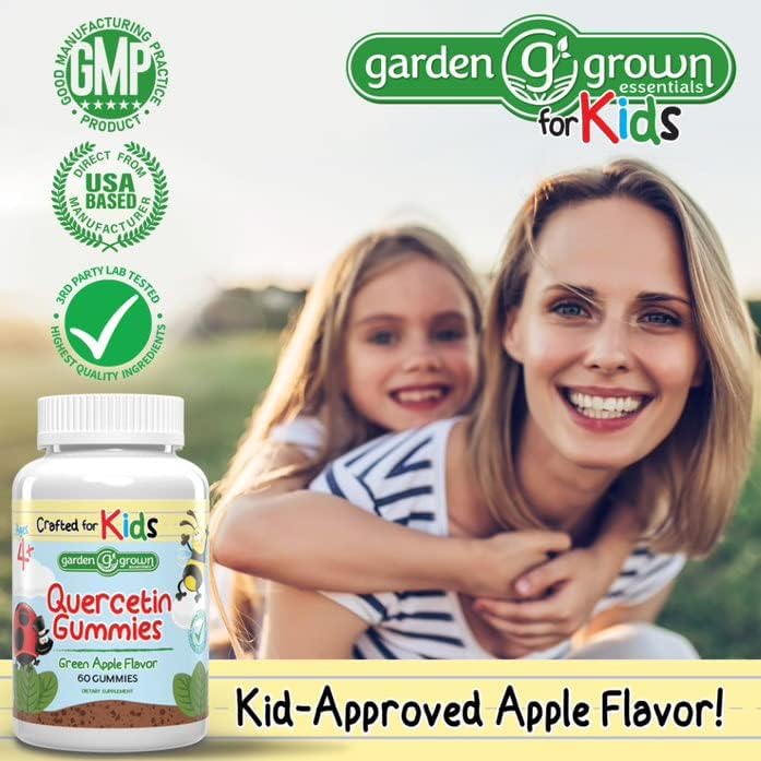 علكة كيرسيتين للاطفال من جاردن جرون اسينشالز - فيتامينات كيرسيتين جامي مع زنك بروميلين وتوت البلسان بتركيبة للاطفال - تدعم المناعة والحساسية - طبيعية بالكامل مصنوعة في الولايات المتحدة الامريكية