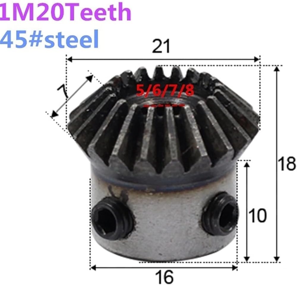 2pcs Bevel Gear 1M 20Teeth 45# Steel Inner Hole 5mm/6mm/7mm/8 Mm Gear 90 Degrees Meshing Angle Steel Gears Screw Hole M5