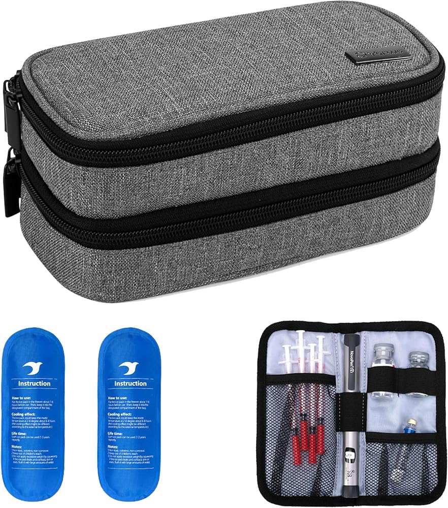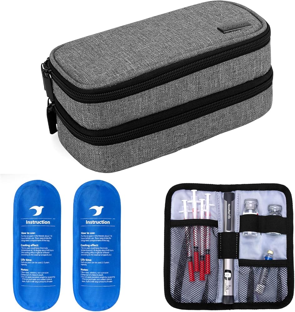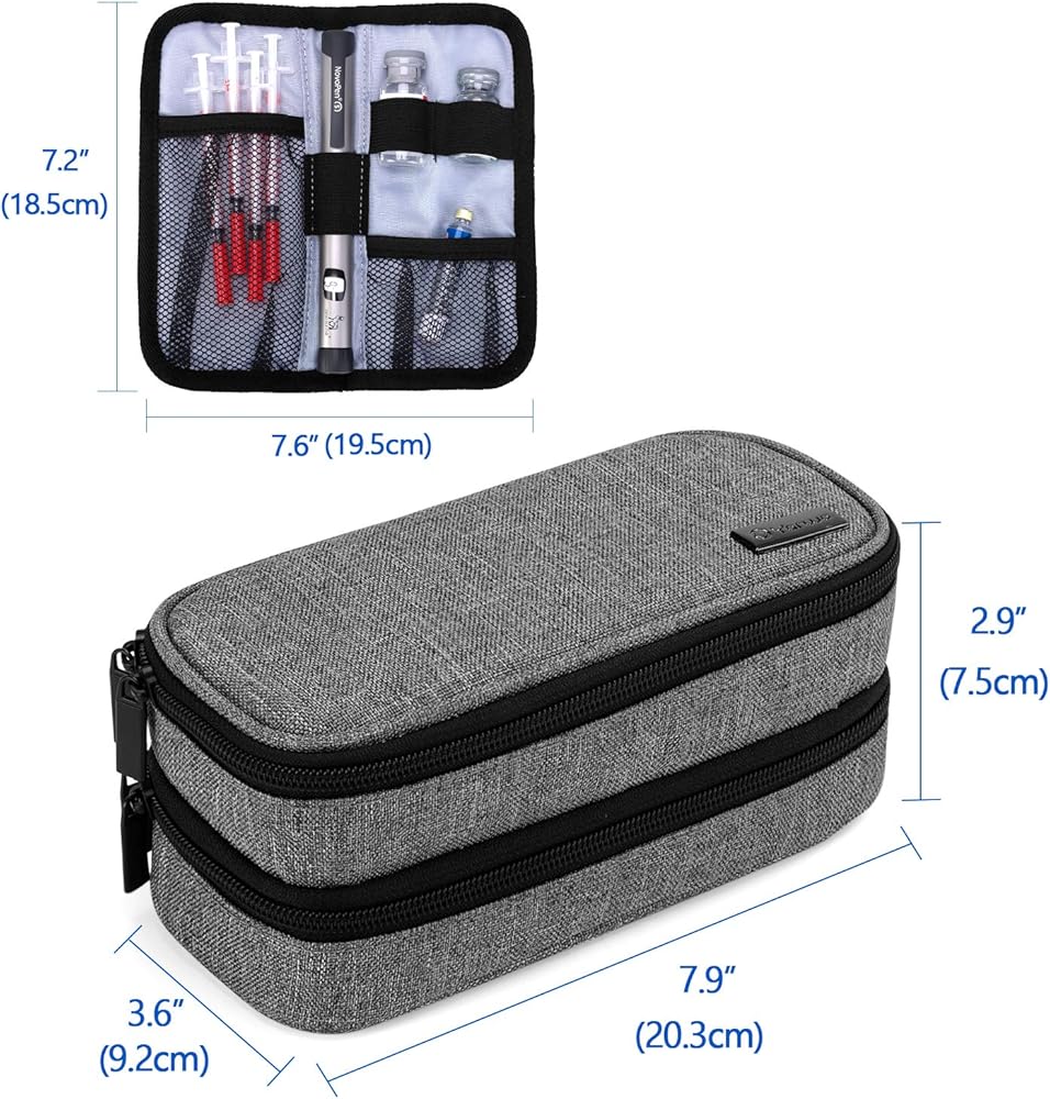 مثالي للسفر - الأبعاد الخارجية: الطول (7.9) × العرض (3.6) × الارتفاع (2.9). مريحة لوضعها في حقيبة اليد والأمتعة وحقيبة السفر وحقيبة الظهر أثناء السفر. رائعة للسفر مع الأنسولين.