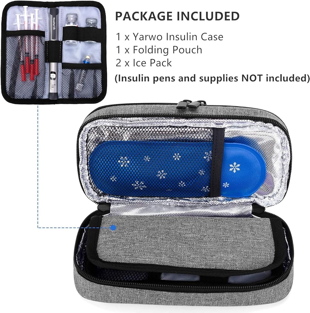 حجرة تبريد الأنسولين المعزولة - الطبقة الثانية ذات البطانة المعزولة لها تأثير عازل ومقاومة للماء. 2 جيوب شبكية لحزمة الثلج. 1 حقيبة إضافية قابلة للطي لتخزين أقلام الأنسولين ومحاقن الأنسولين وقوارير الأنسولين. تصميم تخزين منفصل لحماية الأنسولين من التبريد الزائد ويسهل إدخال جميع الأشياء وإخراجها عند تغيير كيس الثلج.