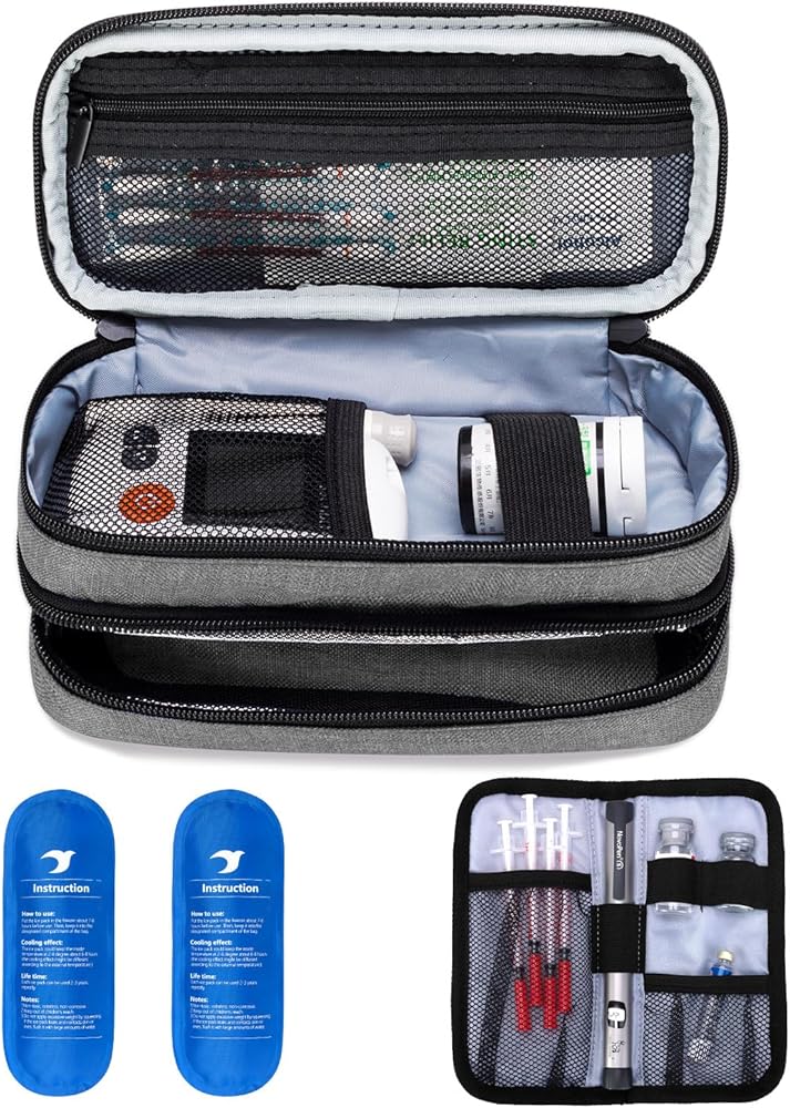 واقية-مصنوعة من مواد النايلون المقاومة للماء. بطانة داخلية سميكة ستقلل من أضرار الصدمات وامتصاص الصدمات، مما يحافظ على مستلزمات مرضى السكري في حالة جيدة.
