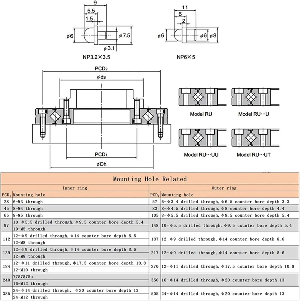 1PC Crossed Roller Bearing RU178 RU228 RU297 RU445 Rotational Accuracy P5/P4 Cross Bearing Large Size