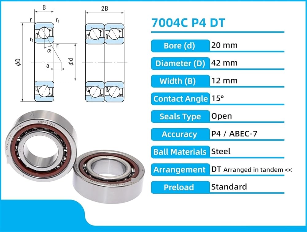 1Pair Bearings 7004c P4 DT 20x42x12 20 * 42 * 12 أداة محامل الاتصال الزاوية 1PCS