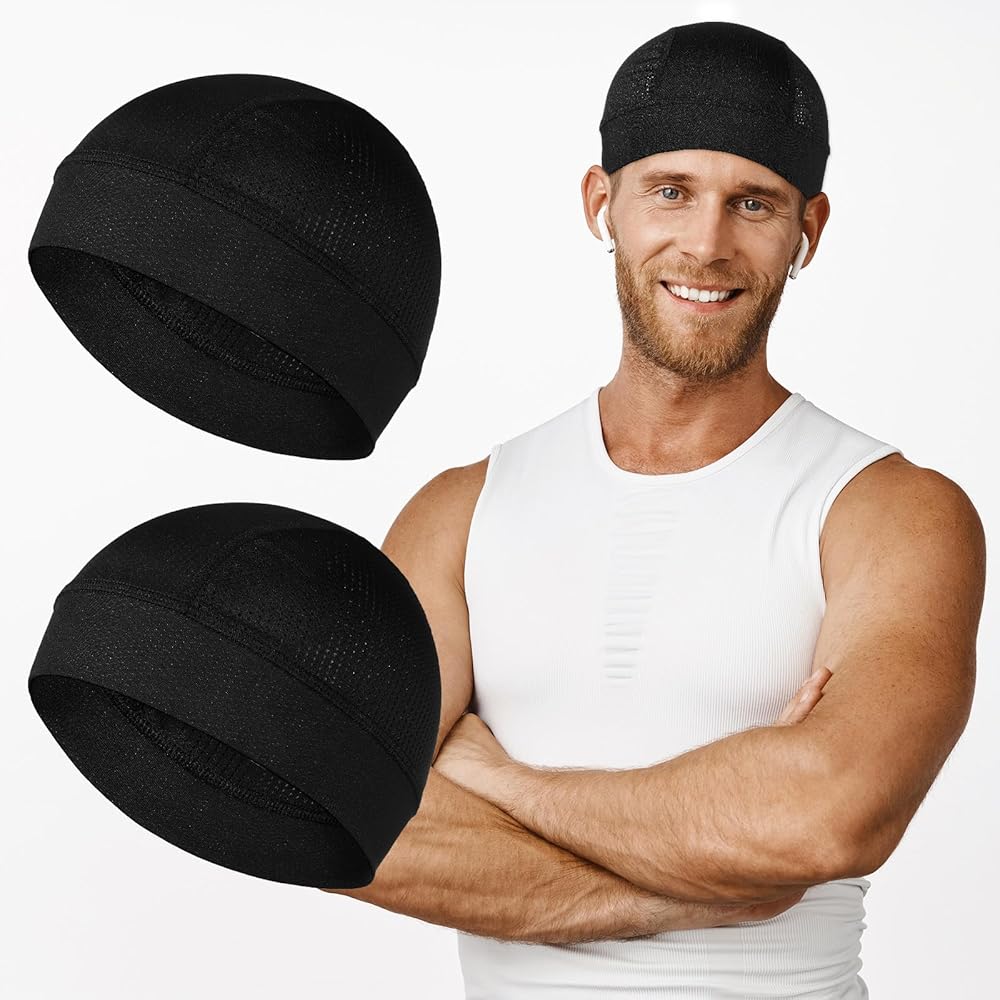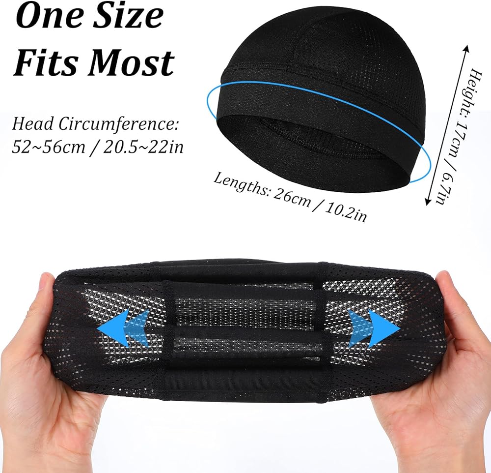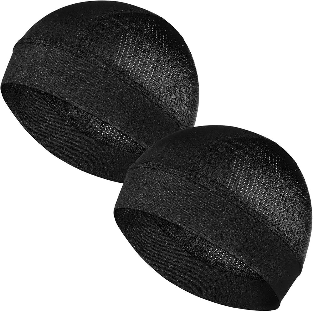2pcs Cooling Skull Caps Helmet Liner Beanie Lightweight Mesh Under Helmet Cycling Motorcycle Hard Hat Stretchy Breathable Sweat Liner Cooling Mesh Running Hat Sweat Wicking Beanie Hat for Men Women