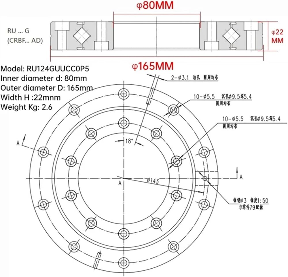 1PCS RU124X UUCC0P5 RU124GUUCC0P5 CRBF8022 80X165X22MM Crossed Roller Bearings