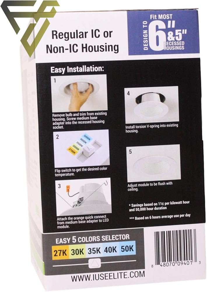 COMPATIBILITY: Elite REL637 series works in Elite housings (LD4IC-AT, LD5IC, LD6IC-AT) and existing 6” incandescent housings. Elite LED Retrofits are shipped with a medium-based socket adapter to allow installation into housings with an E26 incandescent medium-based socket. Also suitable for use in most 6” and 5” incandescent recessed downlight housings