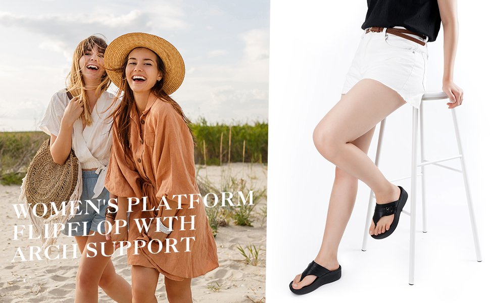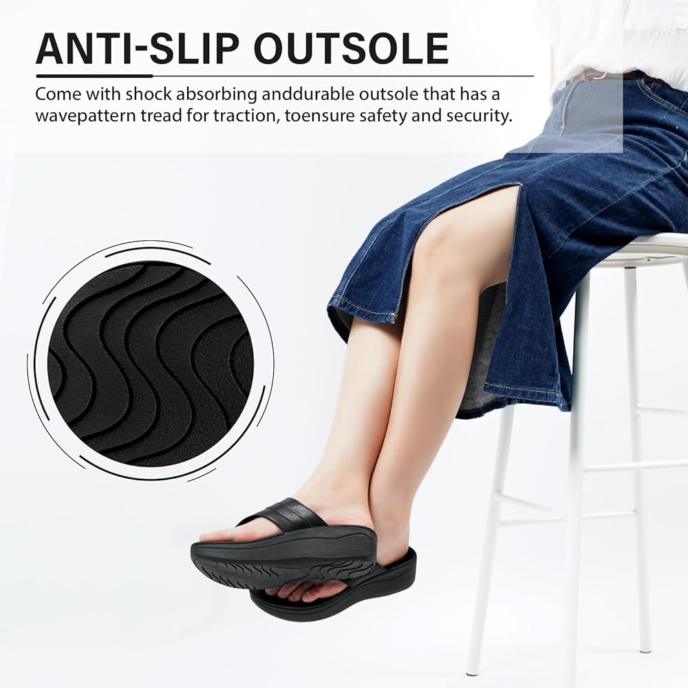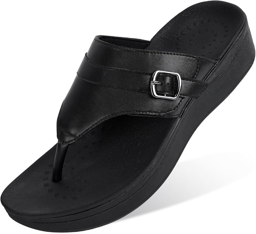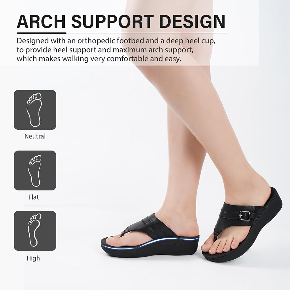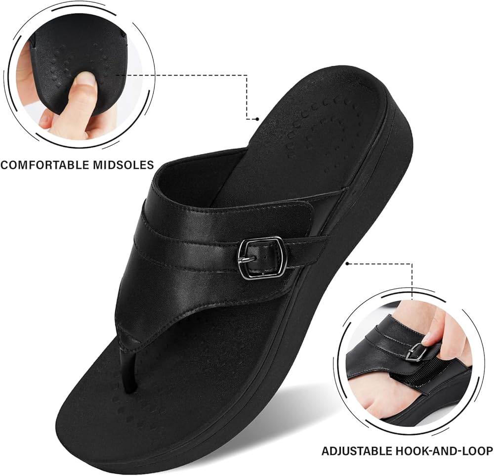 ERGOfoot شباشب لتقويم العظام للنساء، صنادل ثونغ لالتهاب اللفافة الأخمصية للأقدام المسطحة مع دعم القوس، صندل مريح بمنصة عند أصابع القدم مع أشرطة قابلة للتعديل