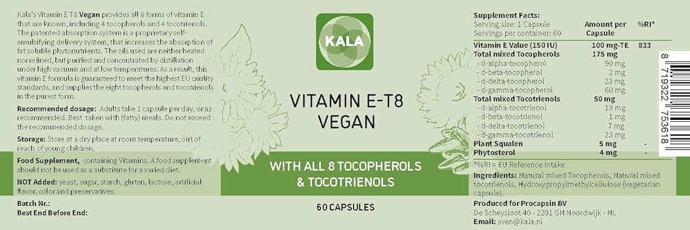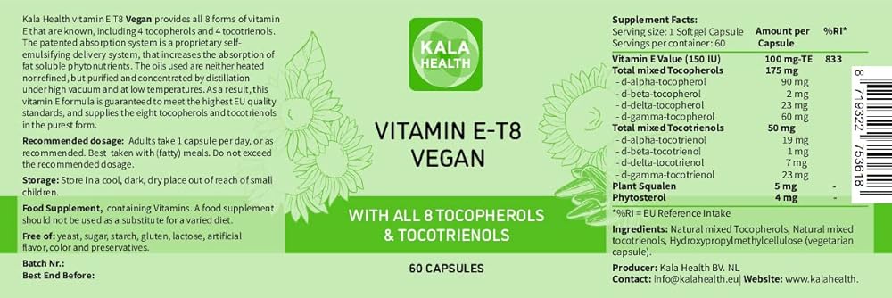 تركيبة كالا هيلث النباتية الفريدة من نوعها مع جميع التوكوفيرول والتوكوترينول الثمانية وفيتامين هـ - 400 وحدة دولية لا تحتوي على الهيدروكربونات العطرية متعددة الحلقات أو المعادن الثقيلة أو الملوثات أو المواد الحافظة - مستدامة معتمدة - الشعر والندبات والبشر
