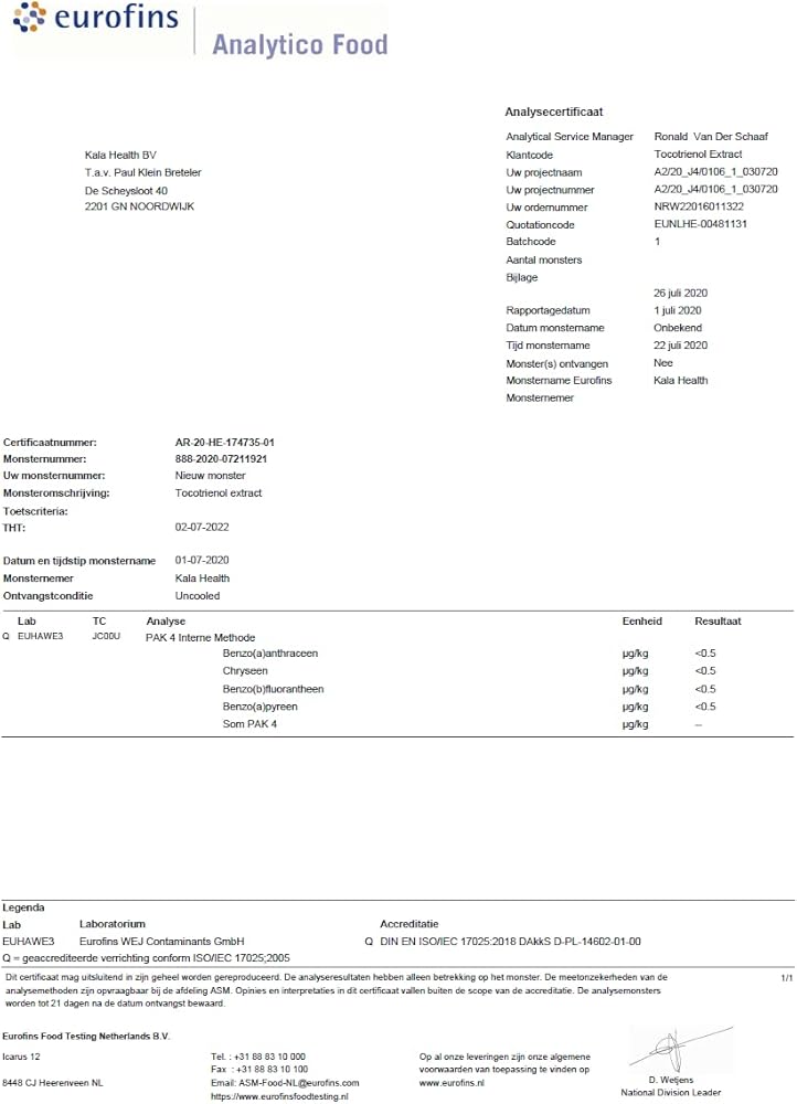 خالية من PAHs وGEs - قد تكون زيوت فيتامين E ملوثة بالهيدروكربونات العطرية متعددة الحلقات (PAHs) واسترات حمض الجليسيديل الدهني (GEs). ومع ذلك، فإن جميع الزيوت المستخدمة في تركيبة فيتامين E-T8 هي زيوت خام، ويتم تنقيتها عن طريق التقطير المتعدد في درجات حرارة منخفضة. وبالتالي، فإن تركيبات فيتامين E T8 الخاصة بنا مضمونة خالية من PAHs وGEs. يتم تحليل كل دفعة زيت يتم شراؤها بحثًا عن الهيدروكربونات العطرية متعددة الحلقات بواسطة مختبر مستقل. يتم قبول الدفعات الخالية من PAH فقط في تركيبات فيتامين E-T8 الخاصة بنا.